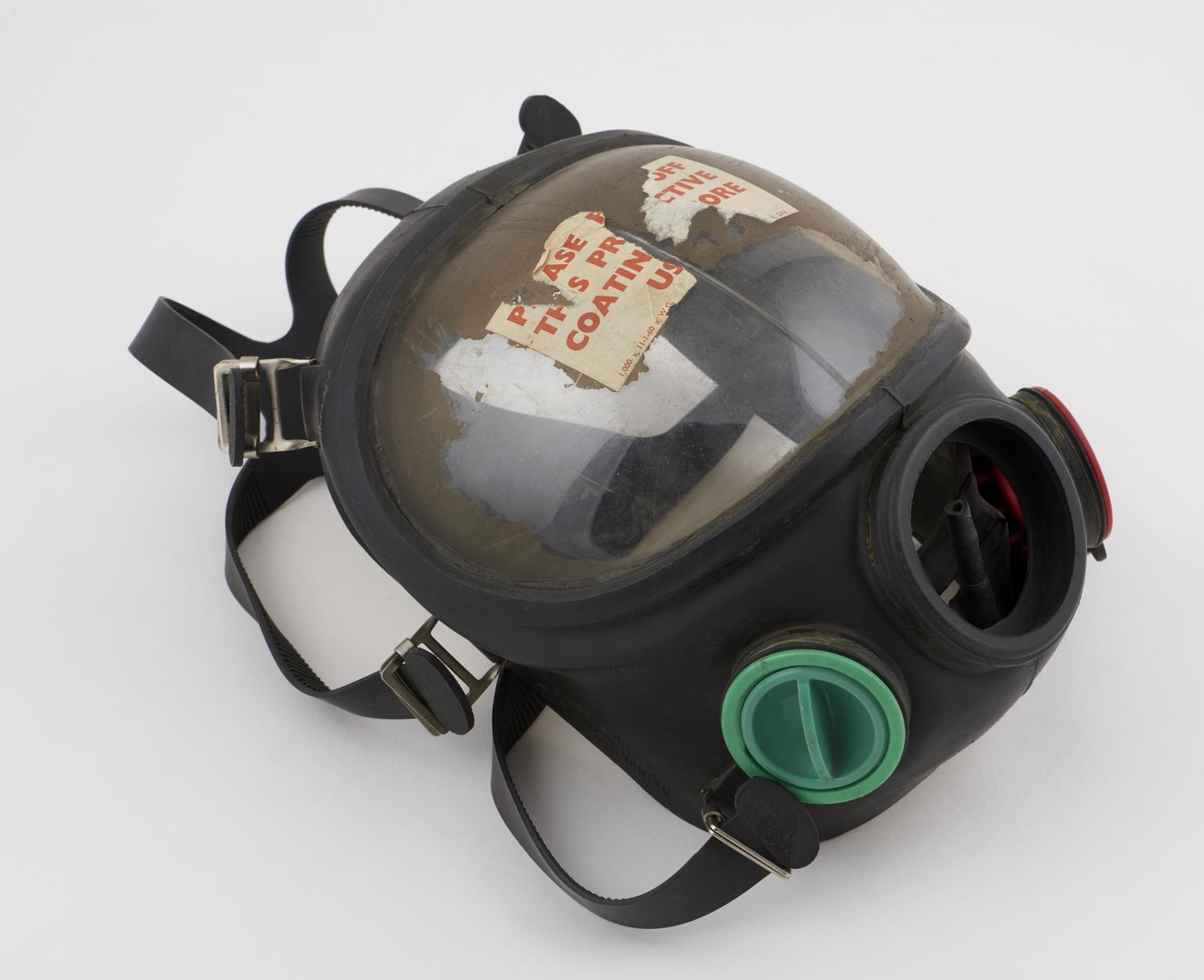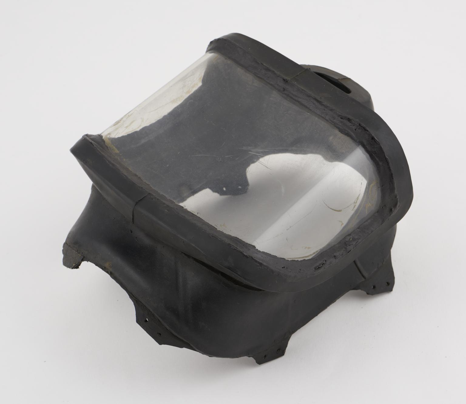 Normalair Industrial Respirator, curved plastic visor (broken), made by Normalair Ltd., Yeovil, England, c. 1960