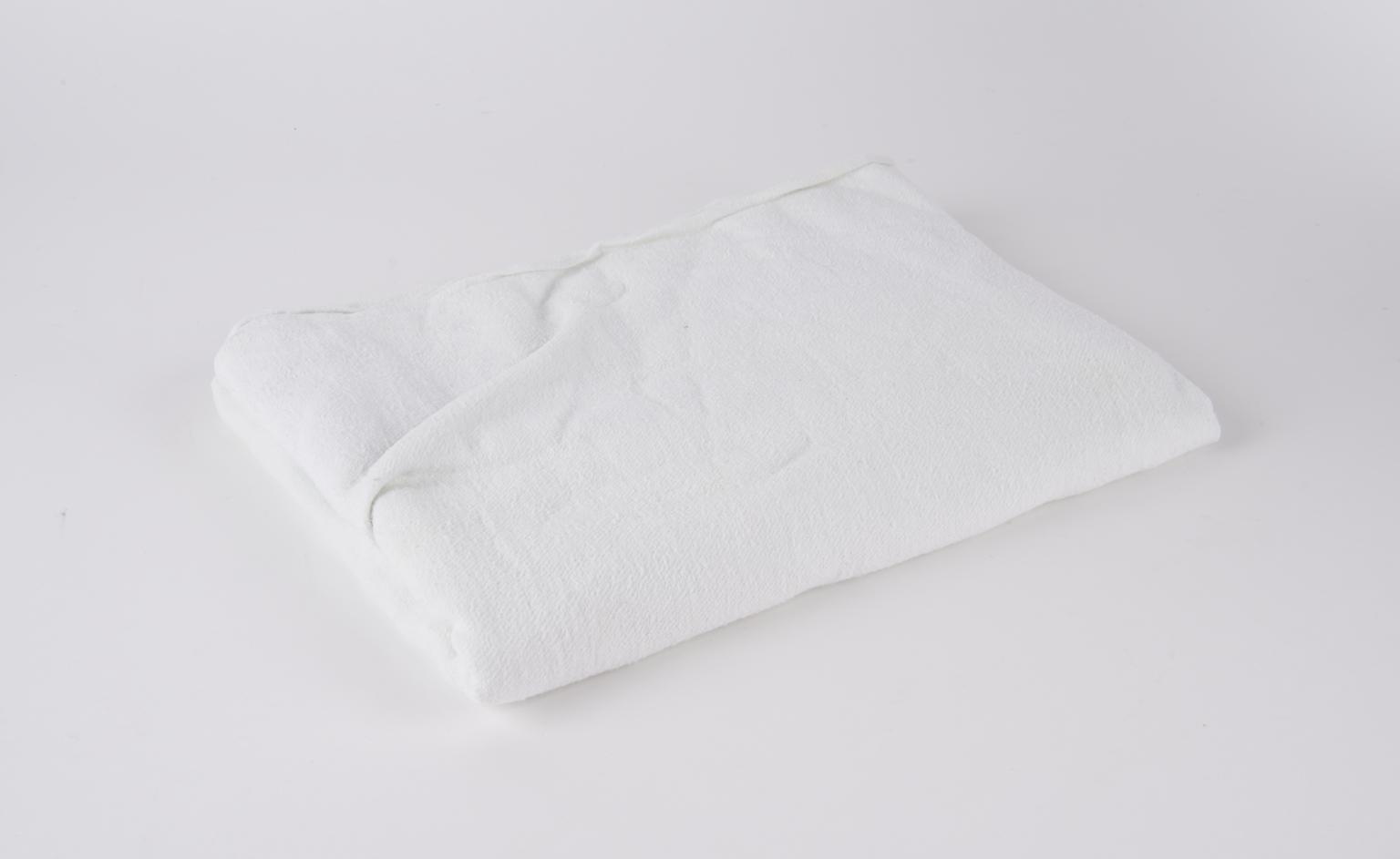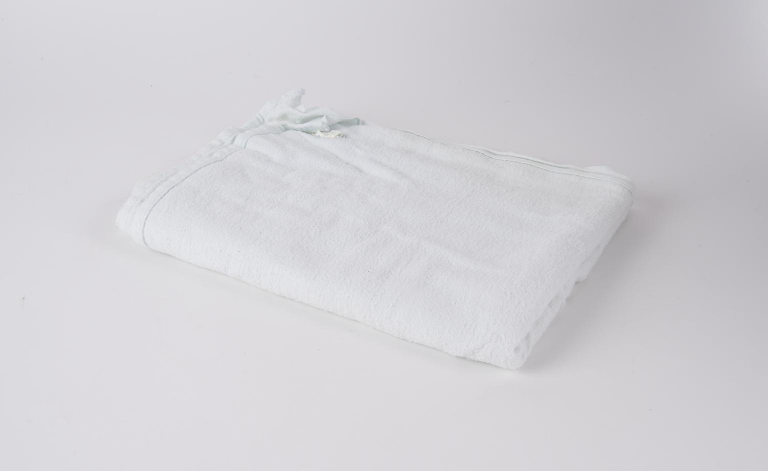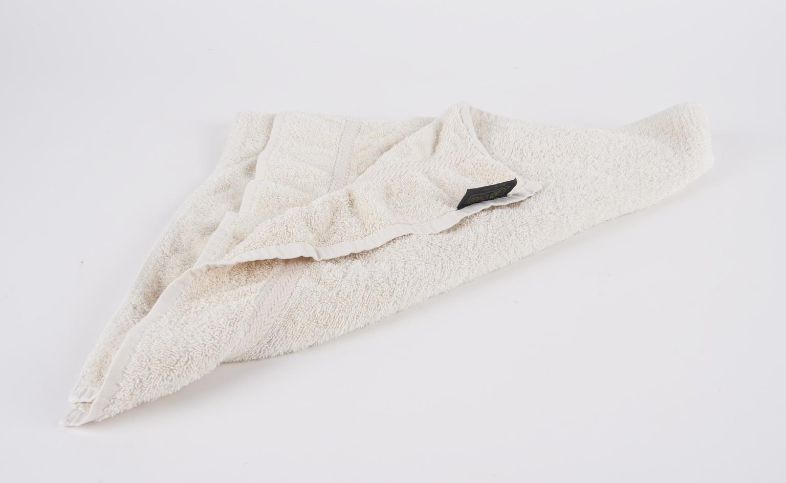 Blanket. One of a collection of four blankets and towels. Blanket is an off-white cotton. Associated with the cot (1982-561/138) but not necessarily a part of the object. Blanket found in the cot in 2018.