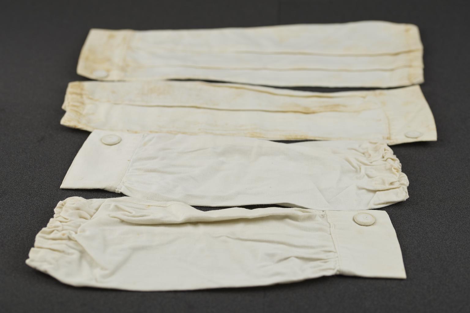 Two pairs of removable elasticated white linen sleeves worn by Kathleen Herrick, a Red Cross nurse in France, 1914-1918