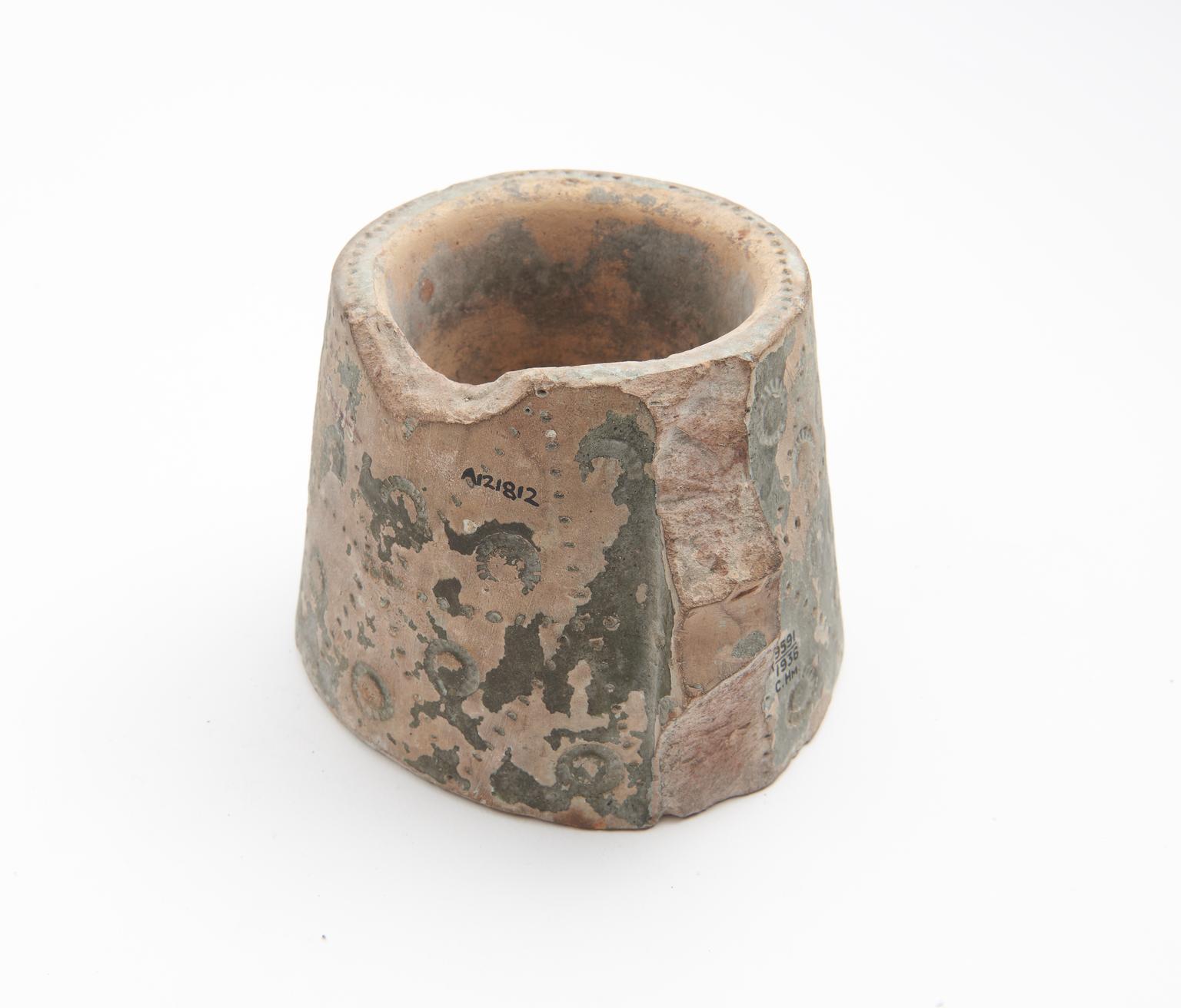 Terracotta mortar, decorated with incised circles and lines, unglazed, South America, 1201-1900