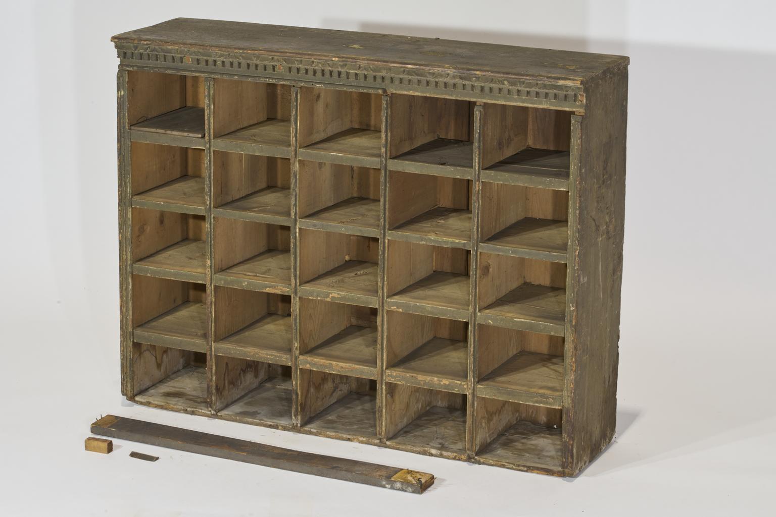 Pharmacy cabinet, wood, for 25 Drawer only 23 present, probably Swiss, 1601-1850