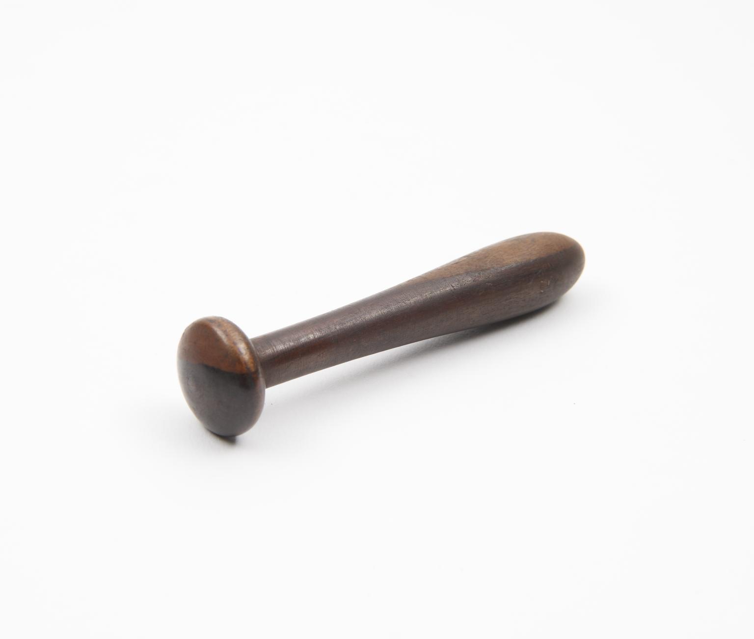 Turned lignum vitae pestle with circular handle, Europe, 1801-1900