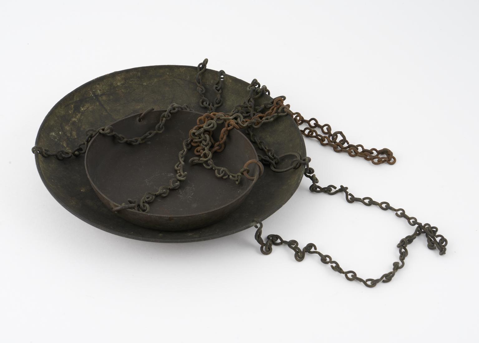 Brass balance, copper left pan, iron left chain, 1701-1900