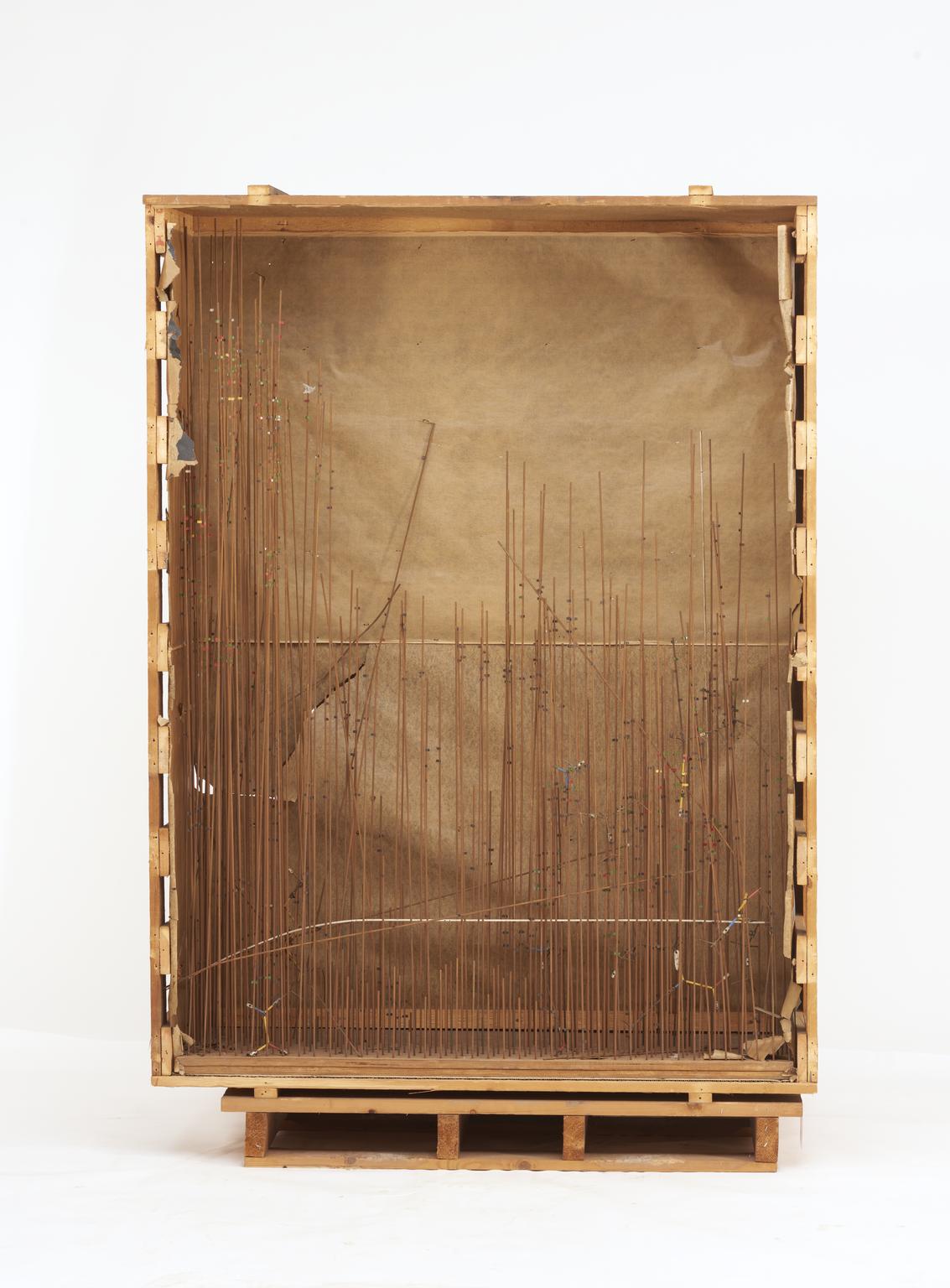 Part of model of myoglobin ("forest of rods") constructed in 1960 during work on the structure of the molecule to a resolution of 2 Angstroms. Model approx. 1.830M high and 1.030M wide