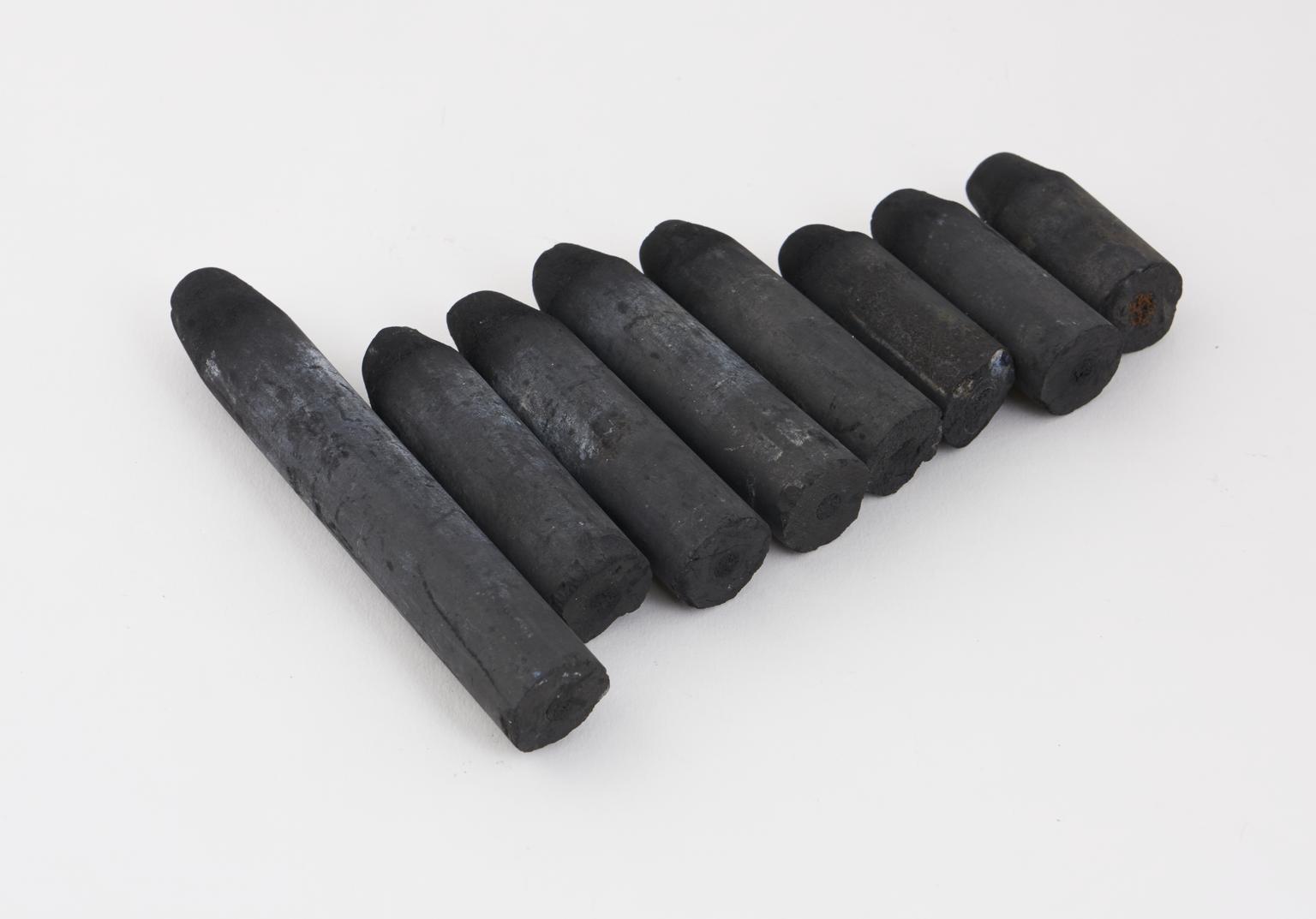 Eight used carbon electrodes for use with arc lamps