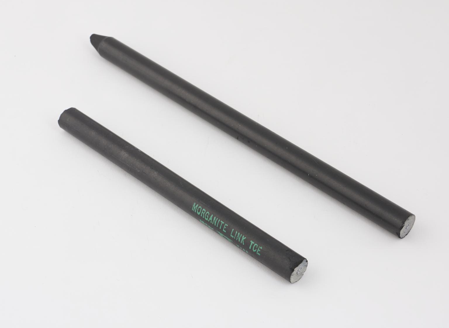 Two unused carbon electrodes for use with arc lamps, marked Morganite Link TCE, British Made".