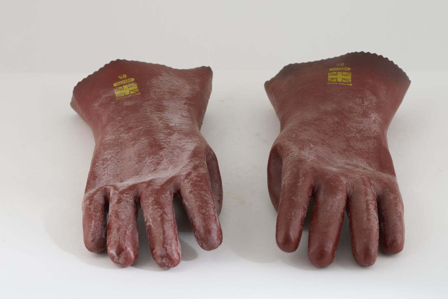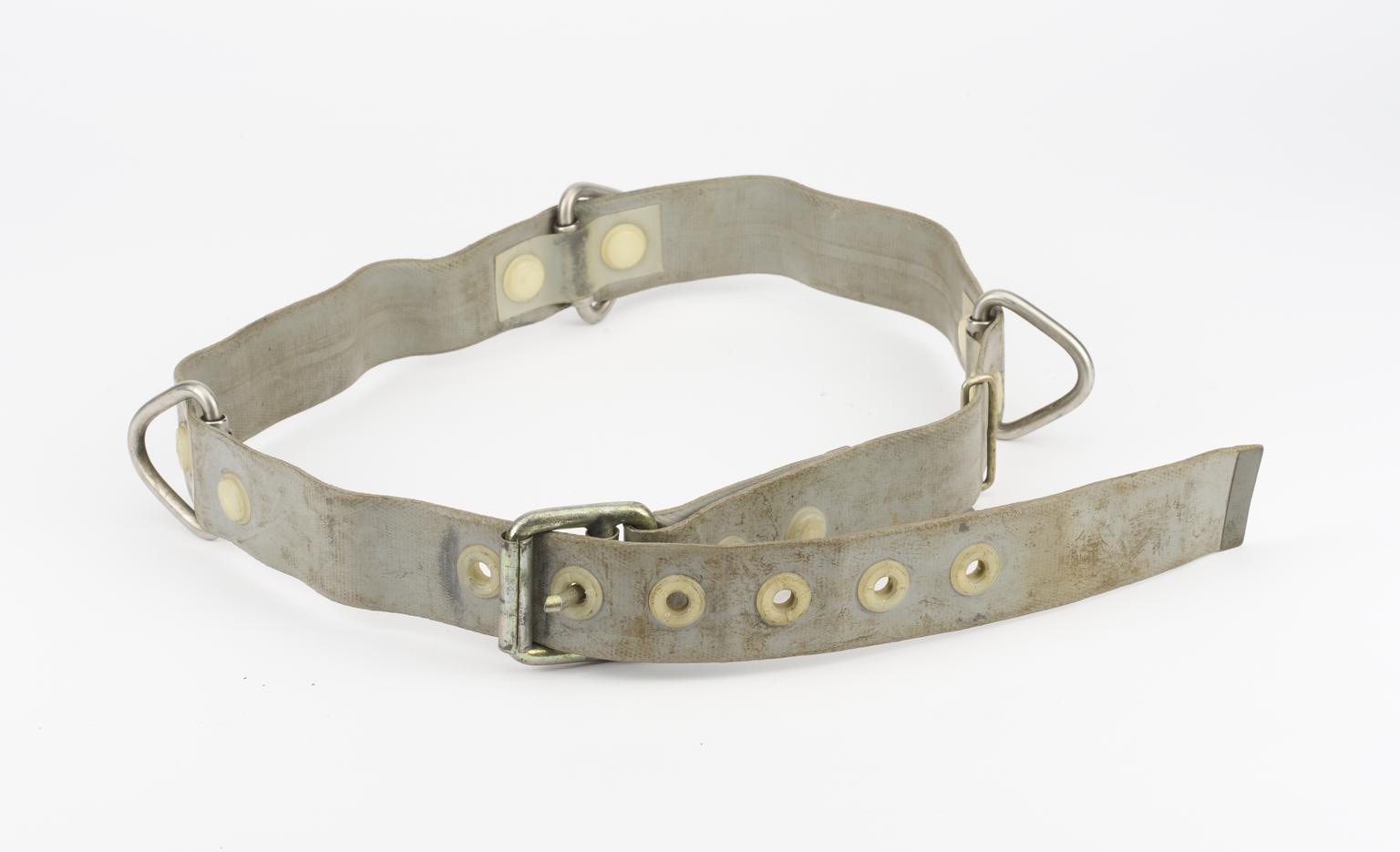 Plastic helmet, part of a sewer flusher's kit.