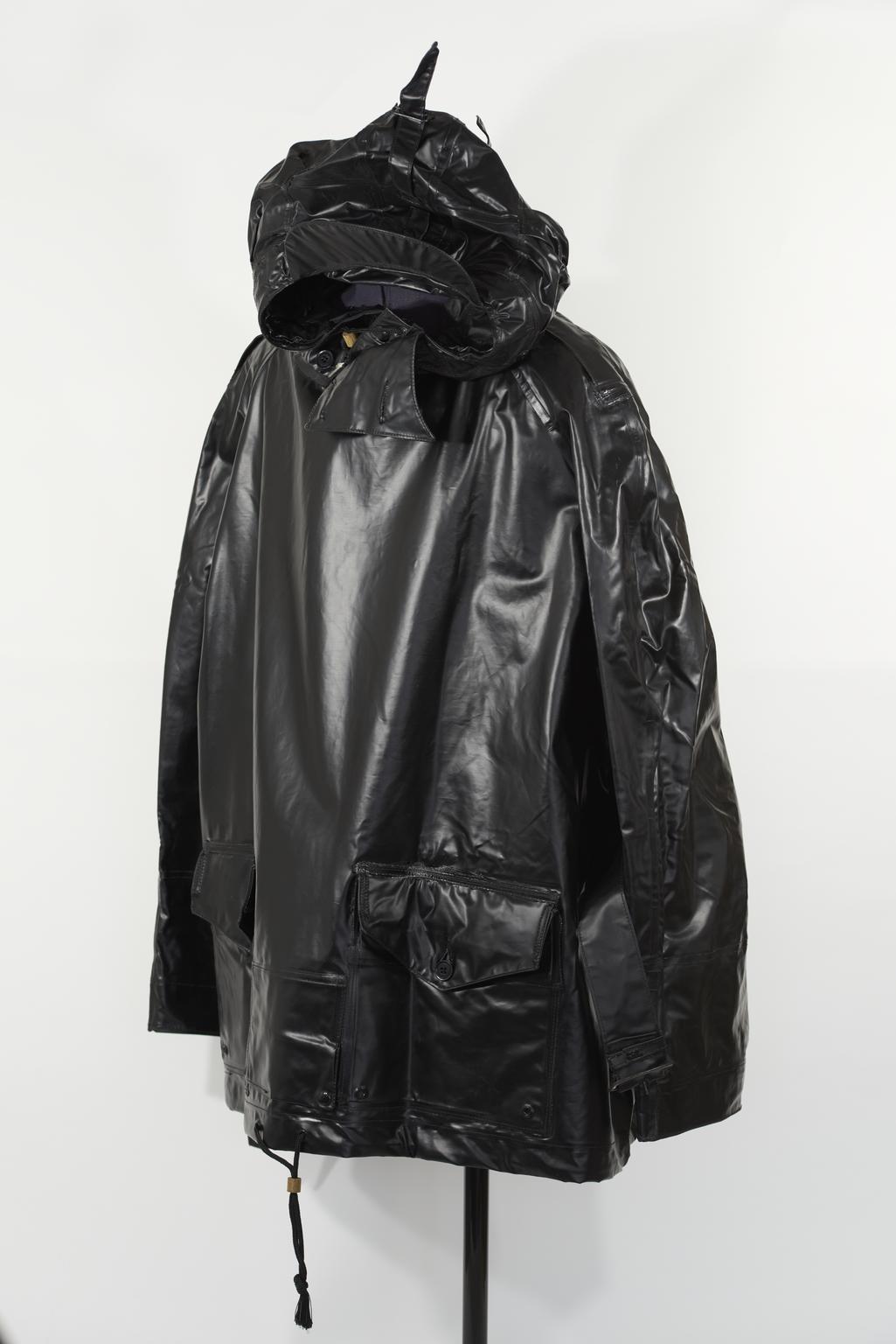 Royal Navy foulweather smock in black pvc, as used in the 1950s and 1960s ( now obsolete)