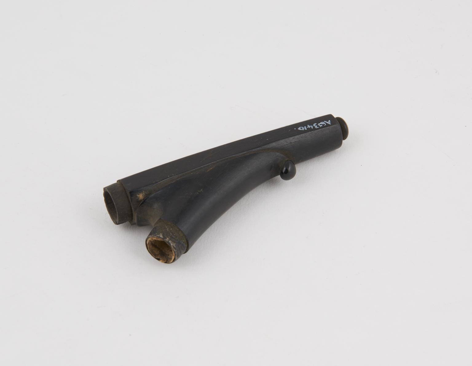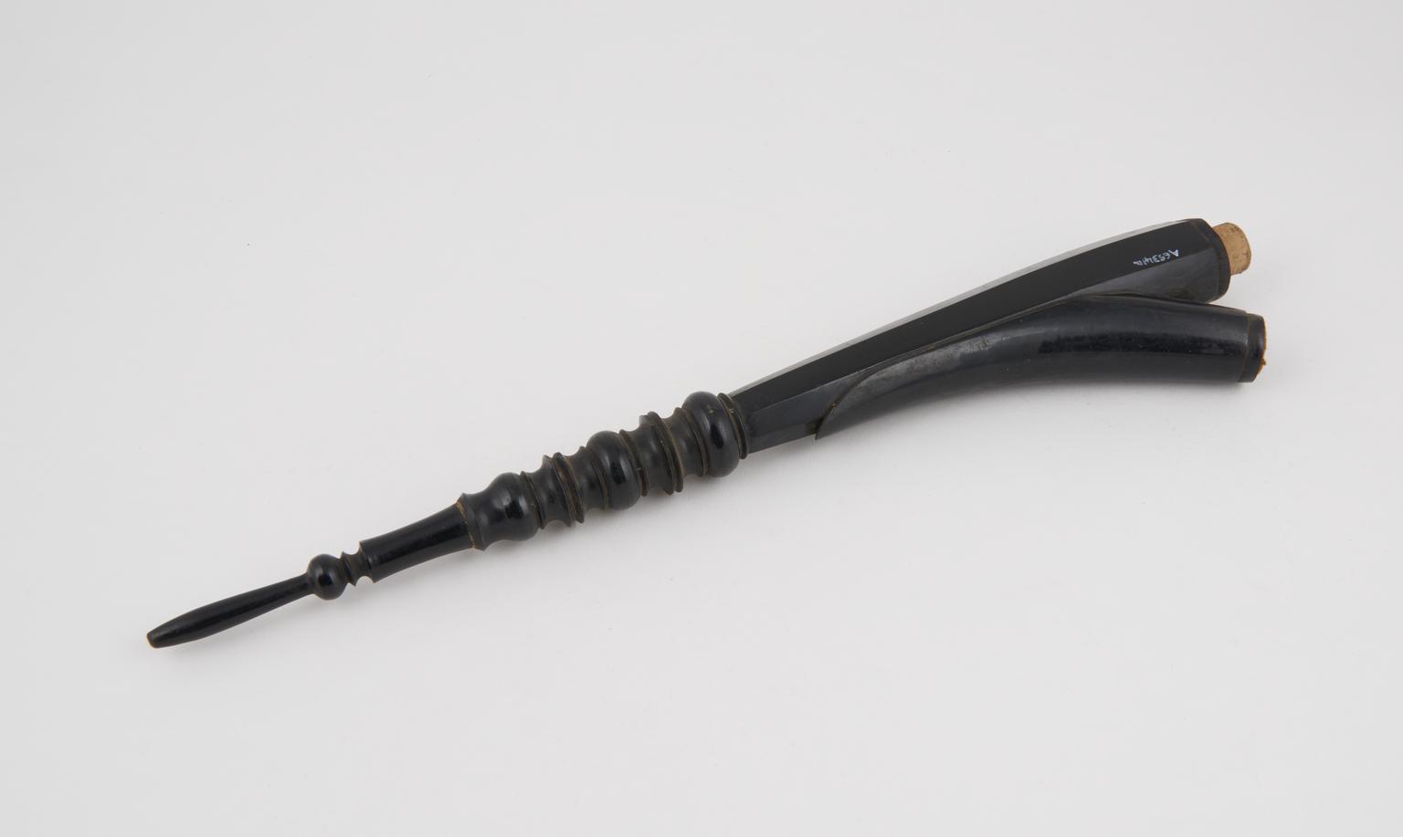 Vulcanite Y shaped reservoir for porcelain tobacco pipe with looped handle
