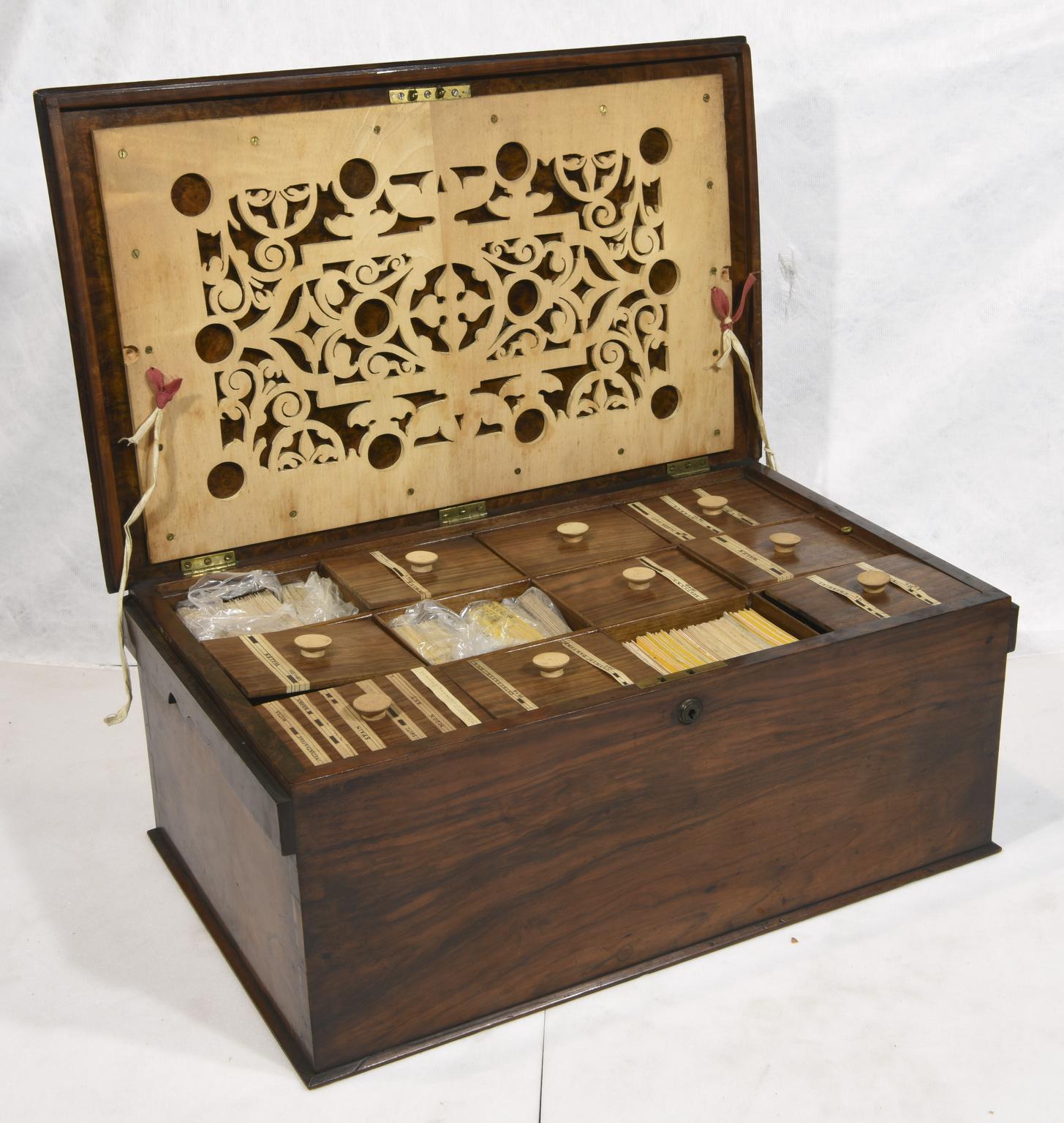 Collection of stereoscopic photographs in cabinet