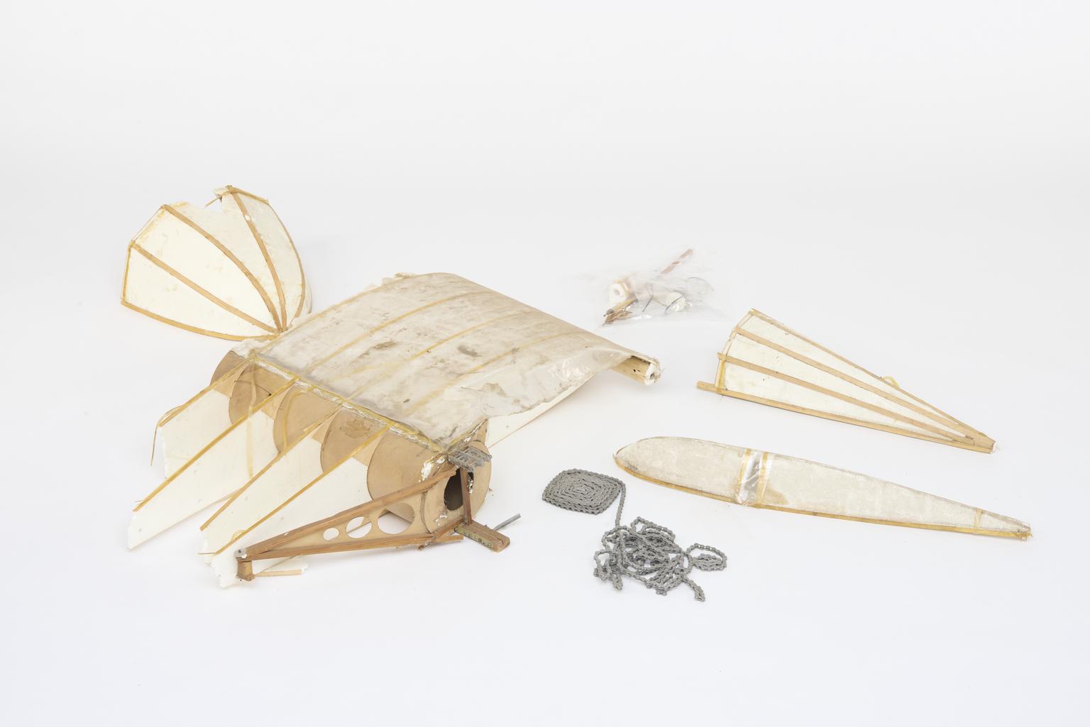 Various sections from the Newbury Manflier aircraft, which was powered by two men. Designed and constructed between 1975-1979 by H C N Goodhart