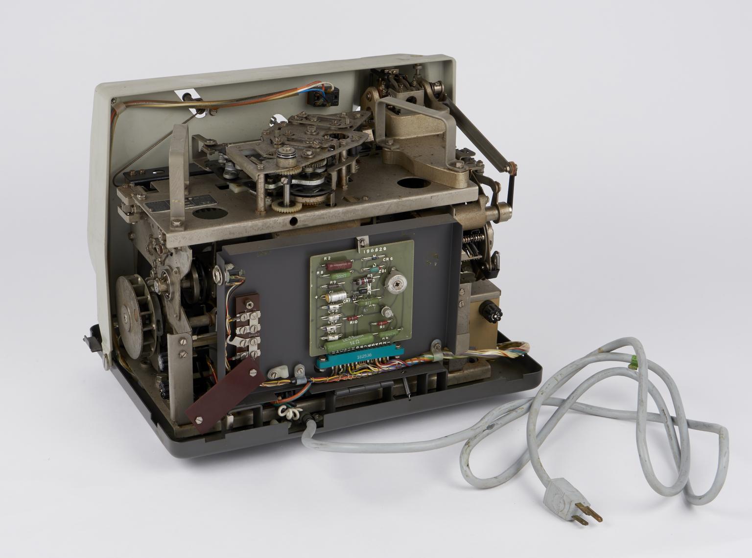 Teletype 37-type "Tickertape" printer, part of casing removed.