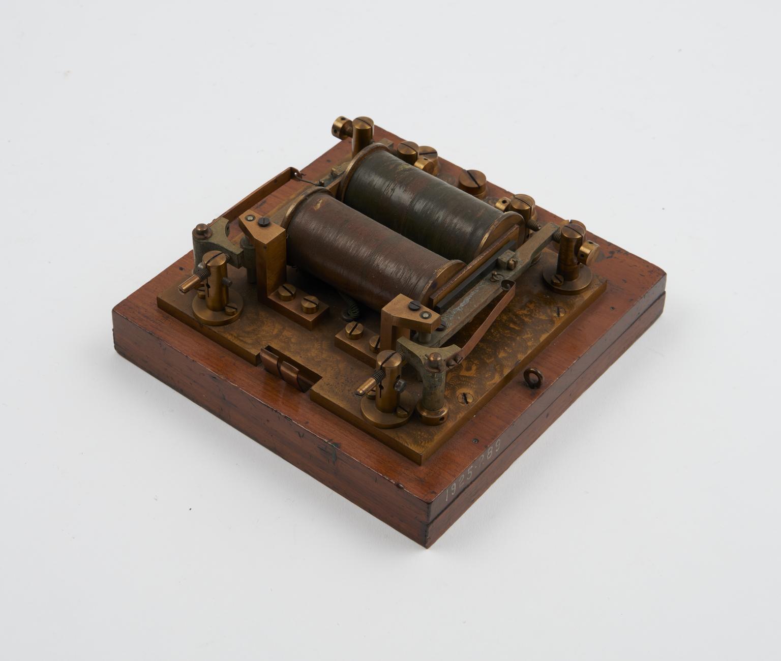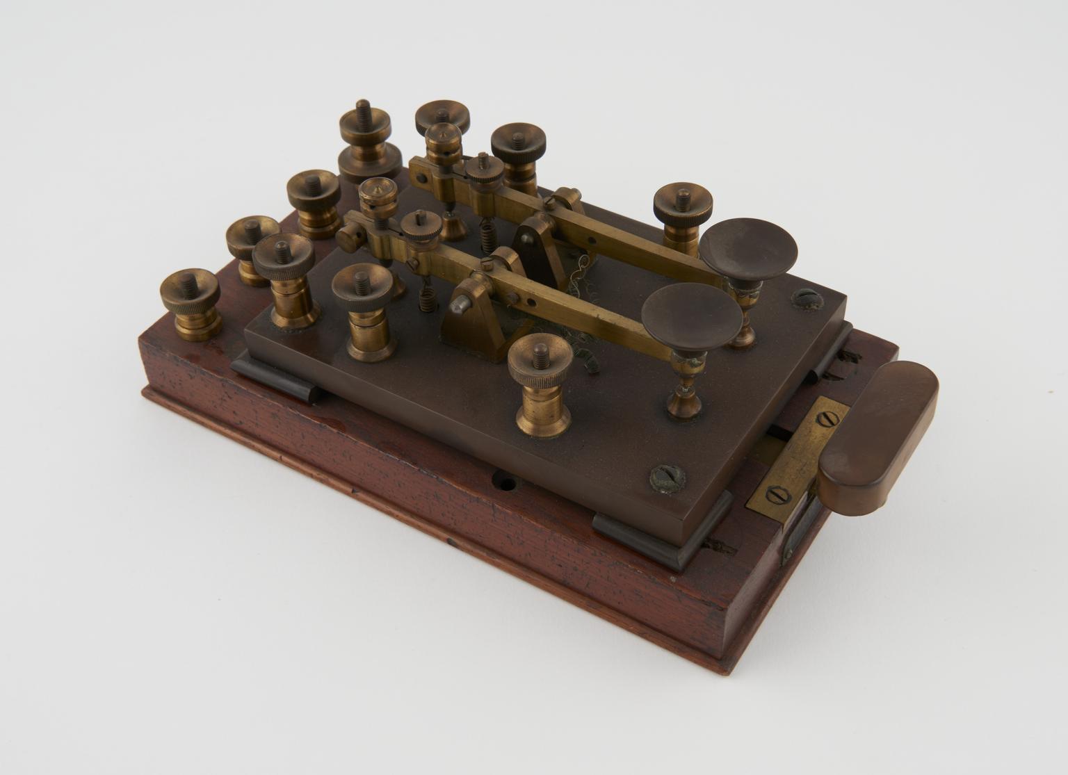 Component of signal key perforator, wood and metal.