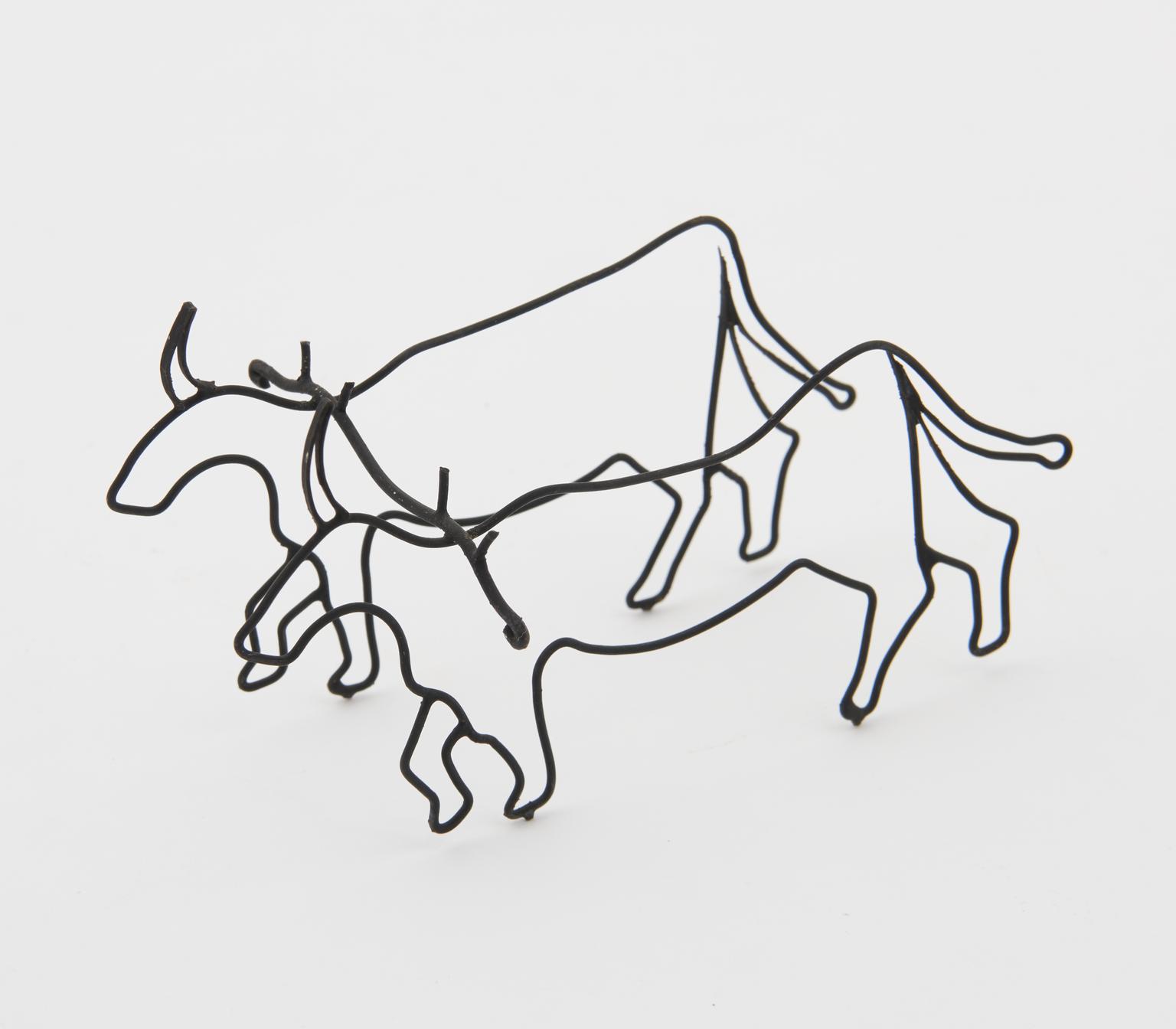 Line drawing style model of two animals, part of a model of an Asia minor plough.