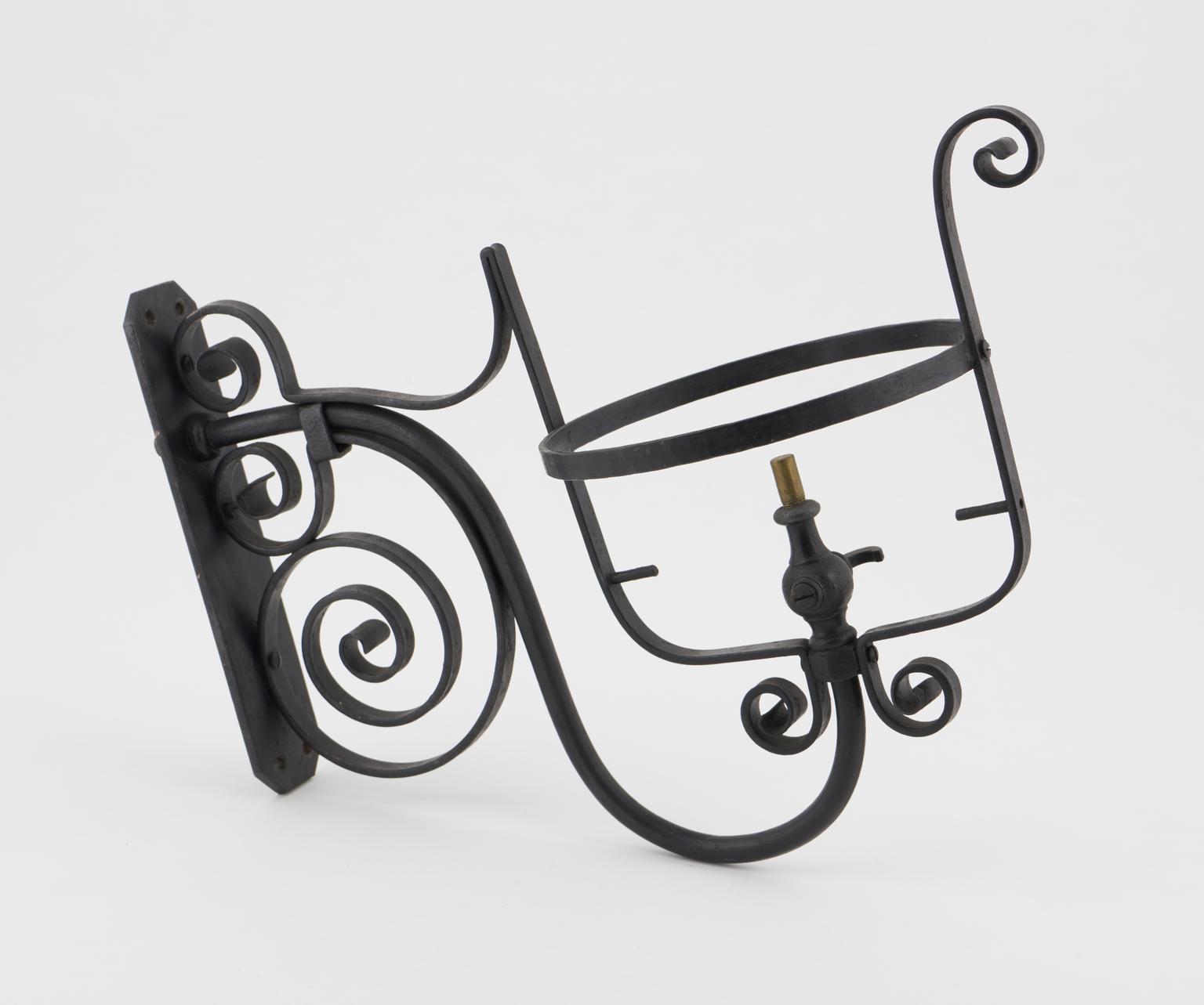 Wrought iron antique bracket with amber glass globe and flat flame burner