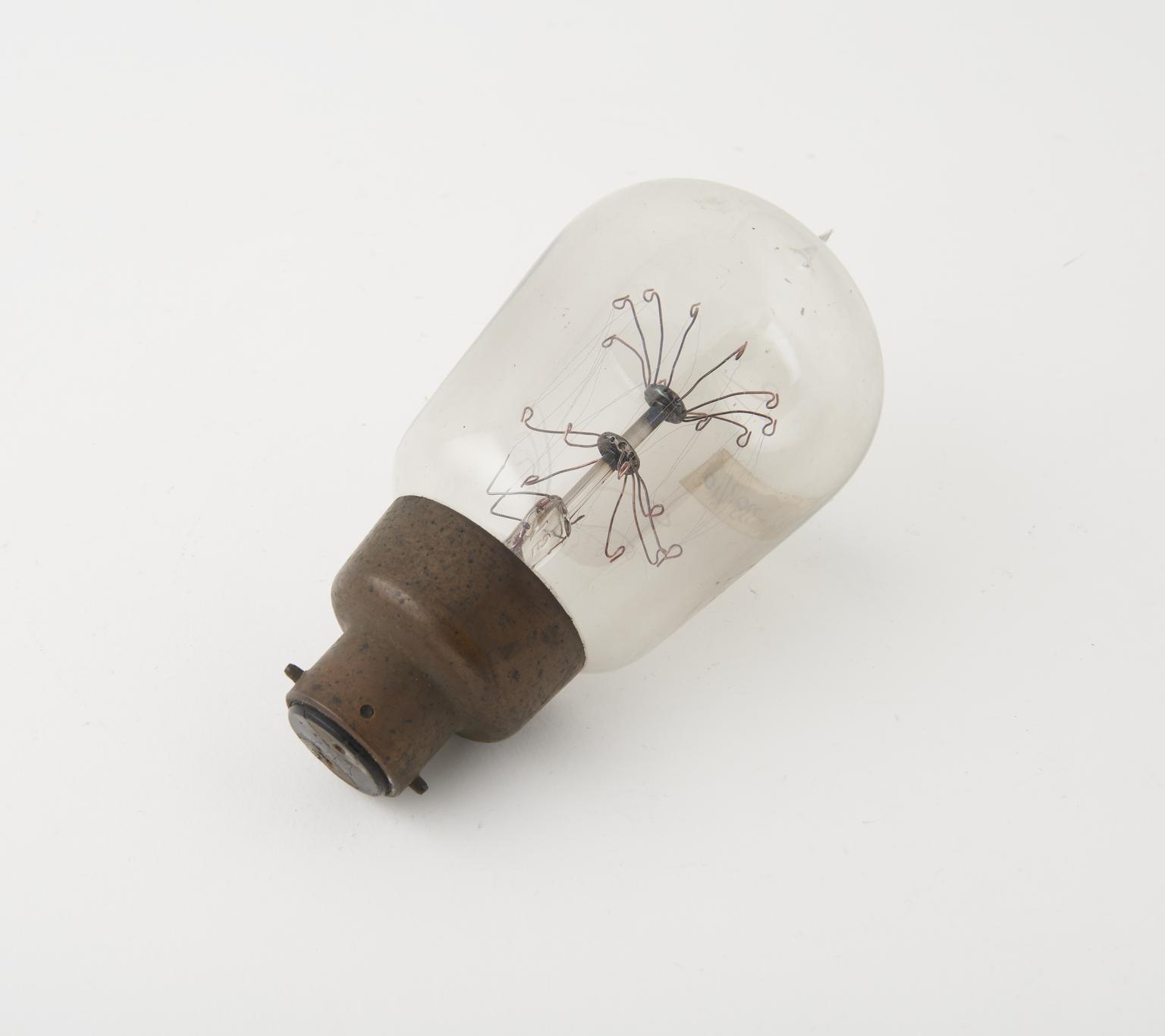 Mazda G.S. bulb with possible tantalum filaments (two of which are unhitched), 125 v. (one of 10 mains light bulbs)