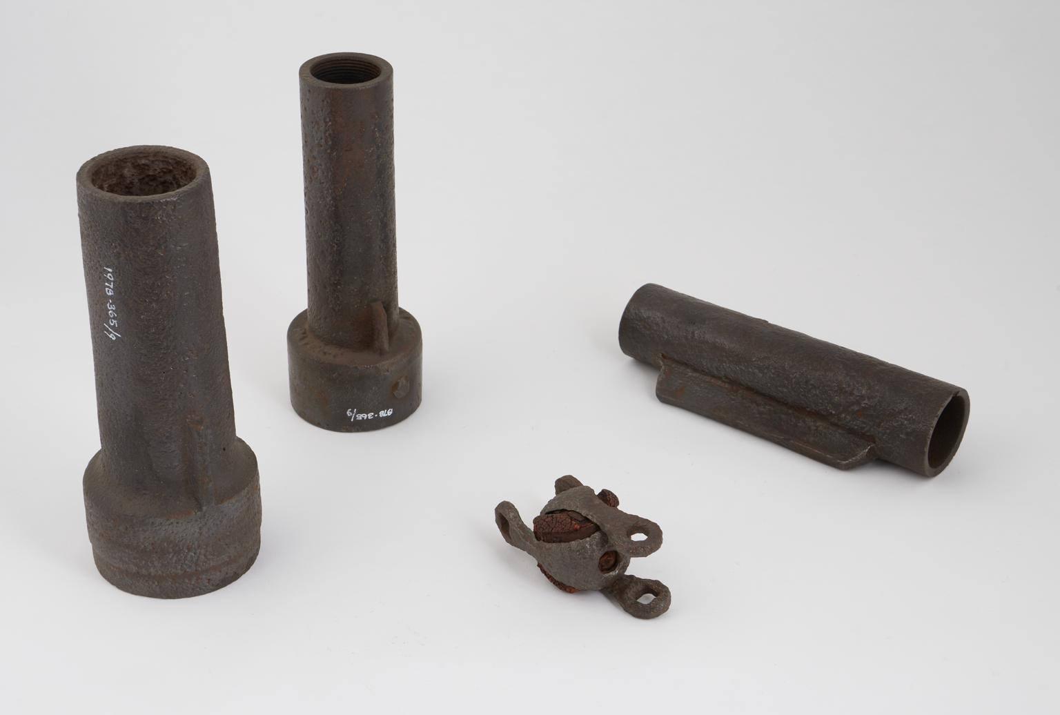 Two Selby patent axle bearings,one hand forged,a taper forged borebearing and a forged coach suspension shock absorber.