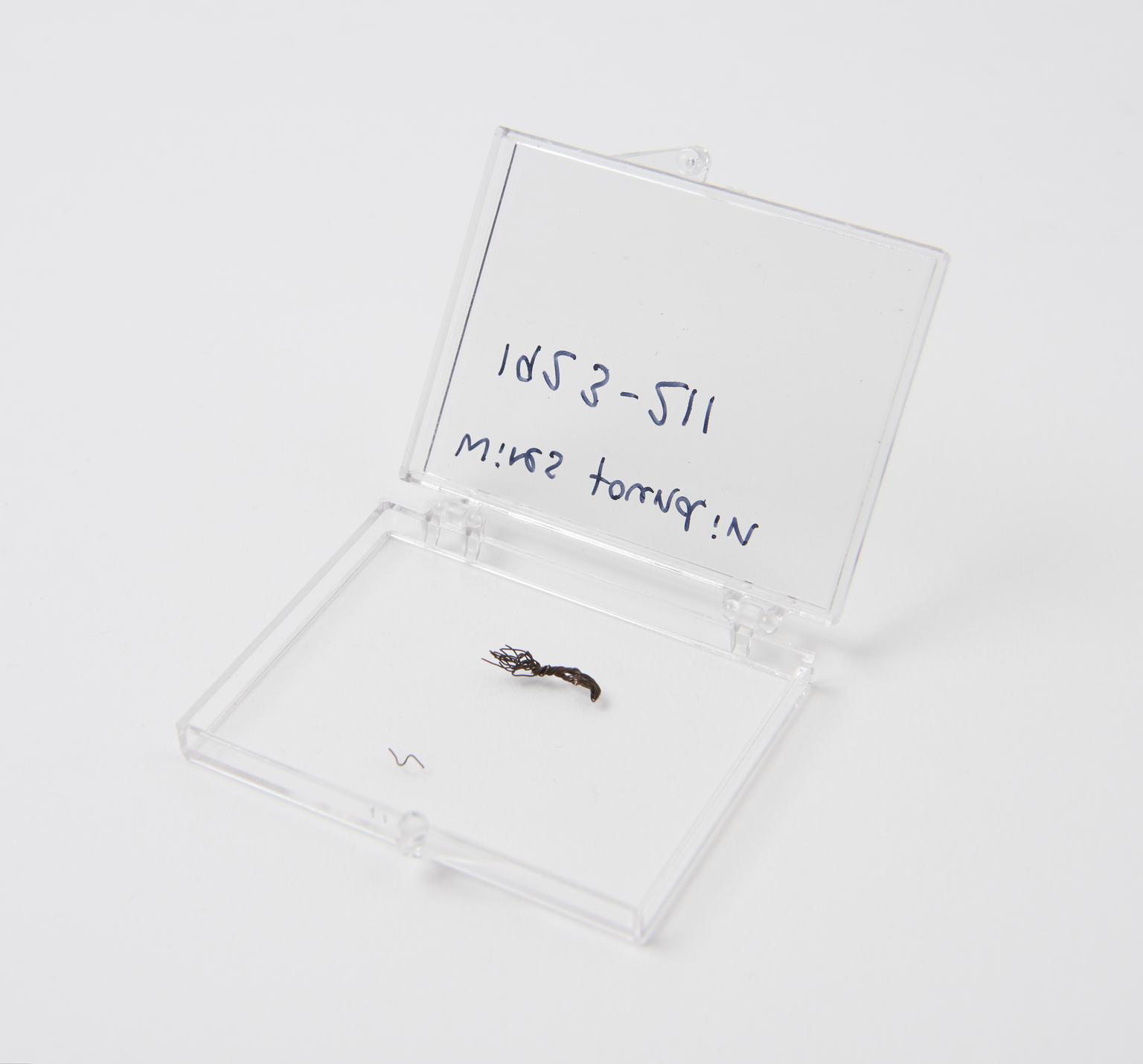 - metal (unknown) , wood (unidentified) and copper (alloy)