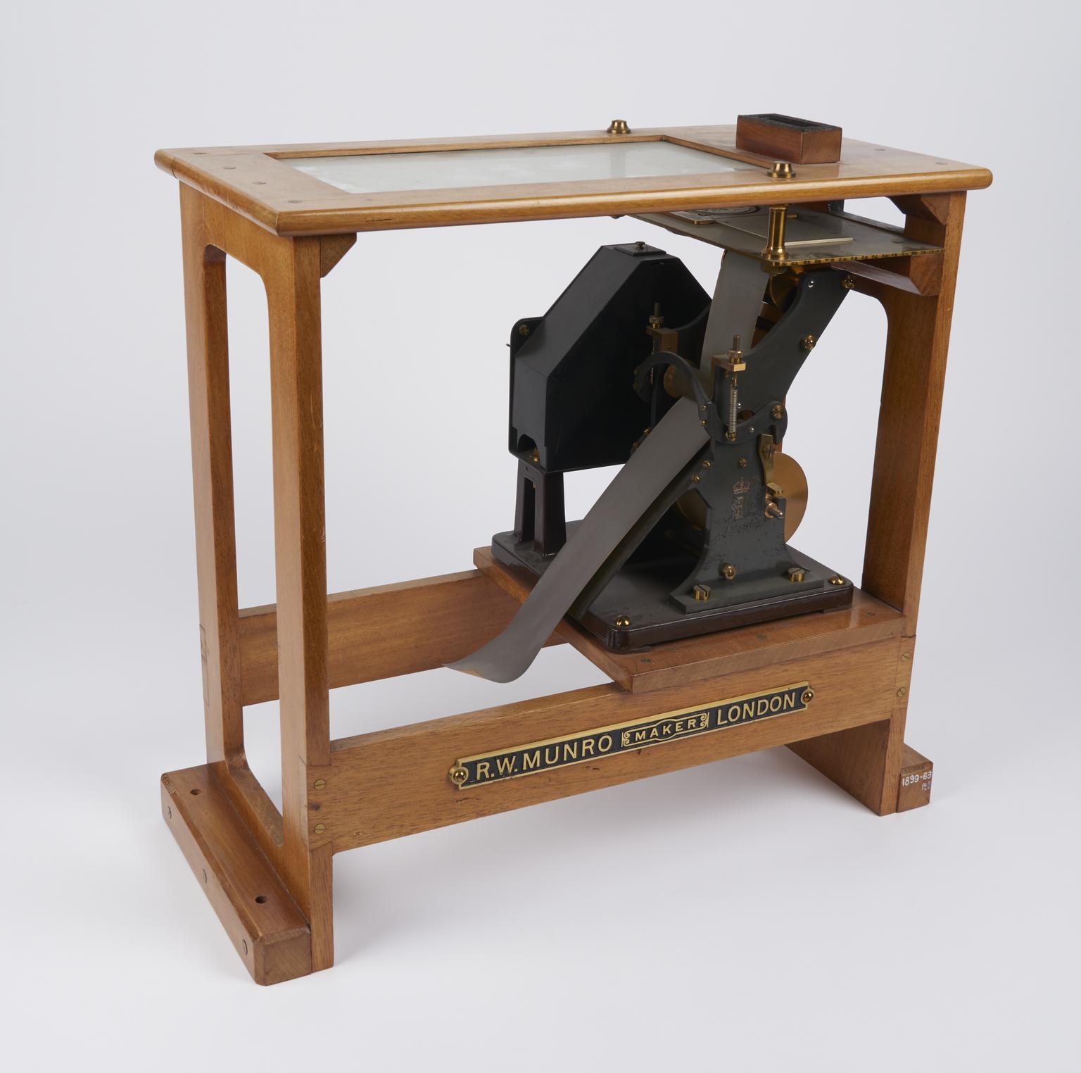 Base and main part from Milne horizontal pendulum seismograph, by R.W. Munro, 1899.