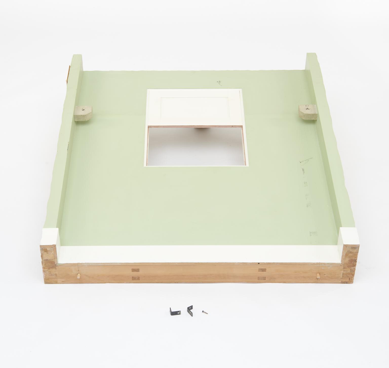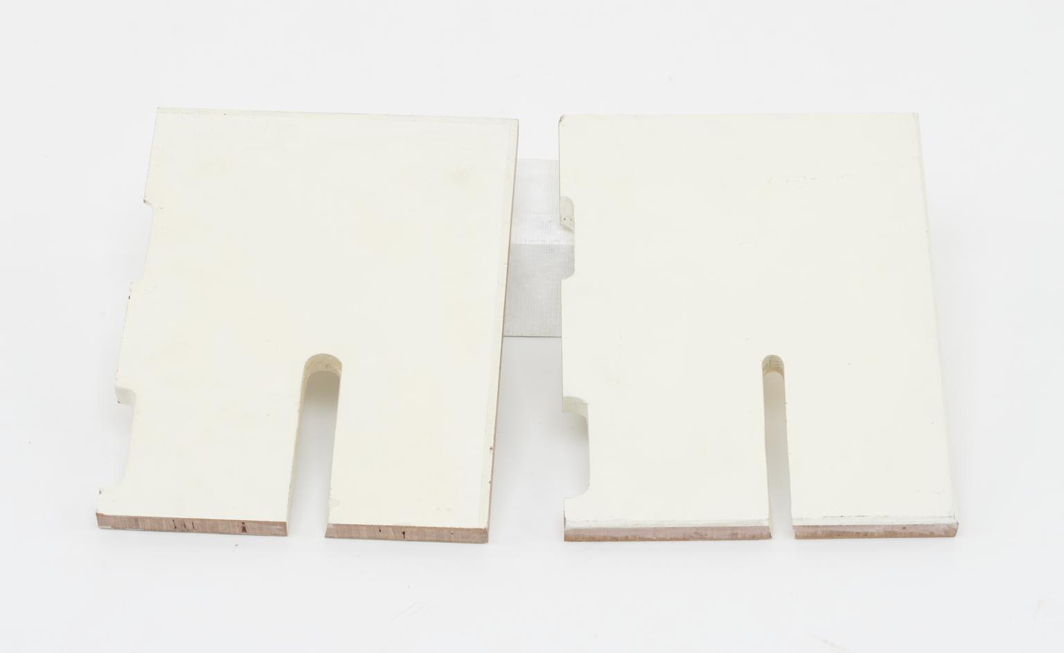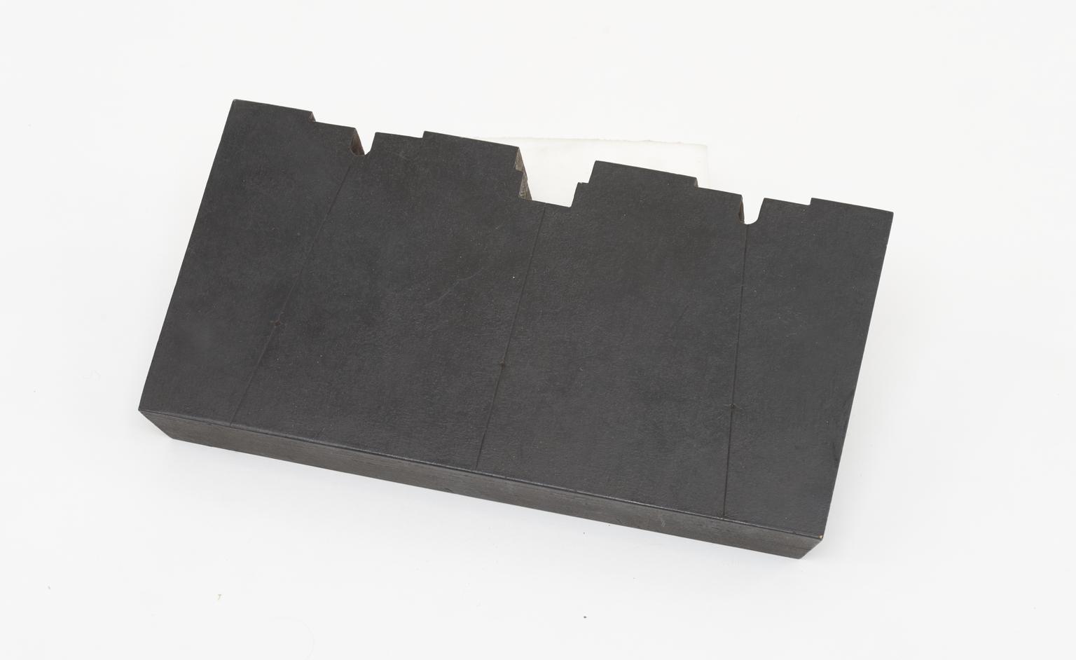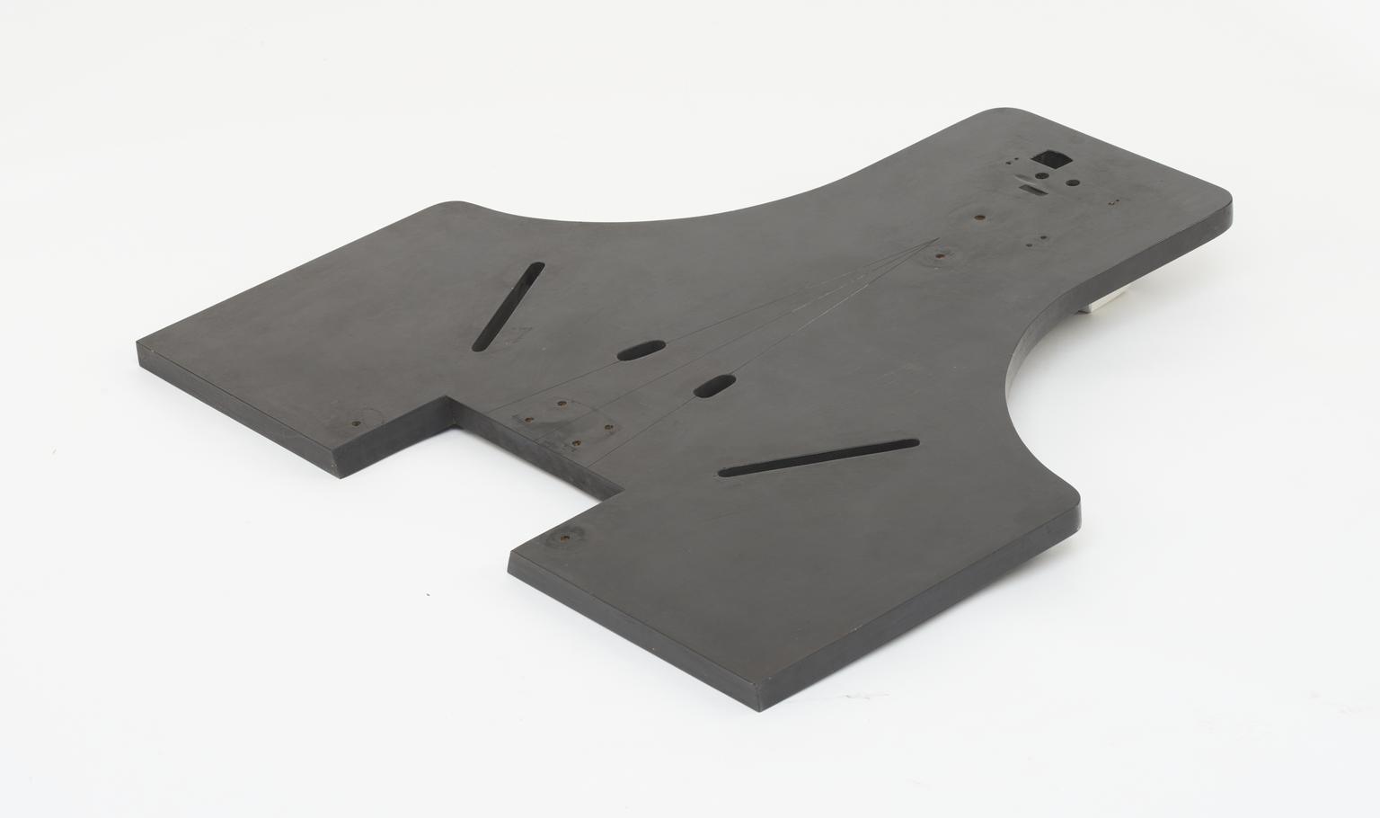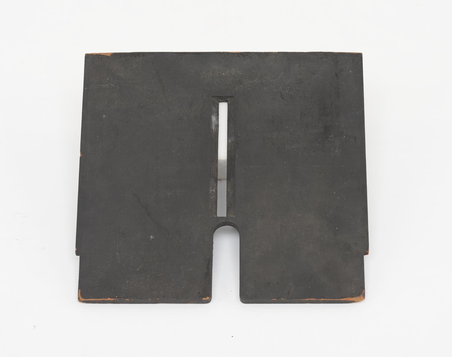 Part - photothermograph - wooden plate with slit and rounded notch.