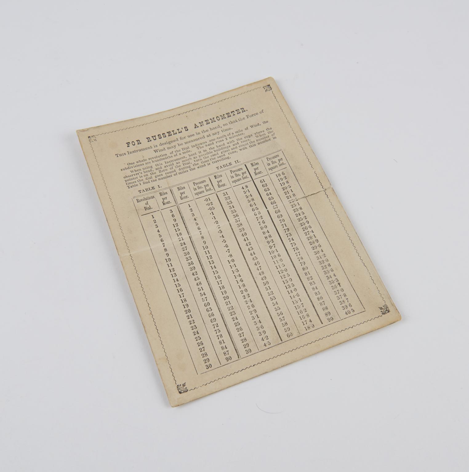 Hand anemometer, Henry Chamberlain Russell type, 1878-1883