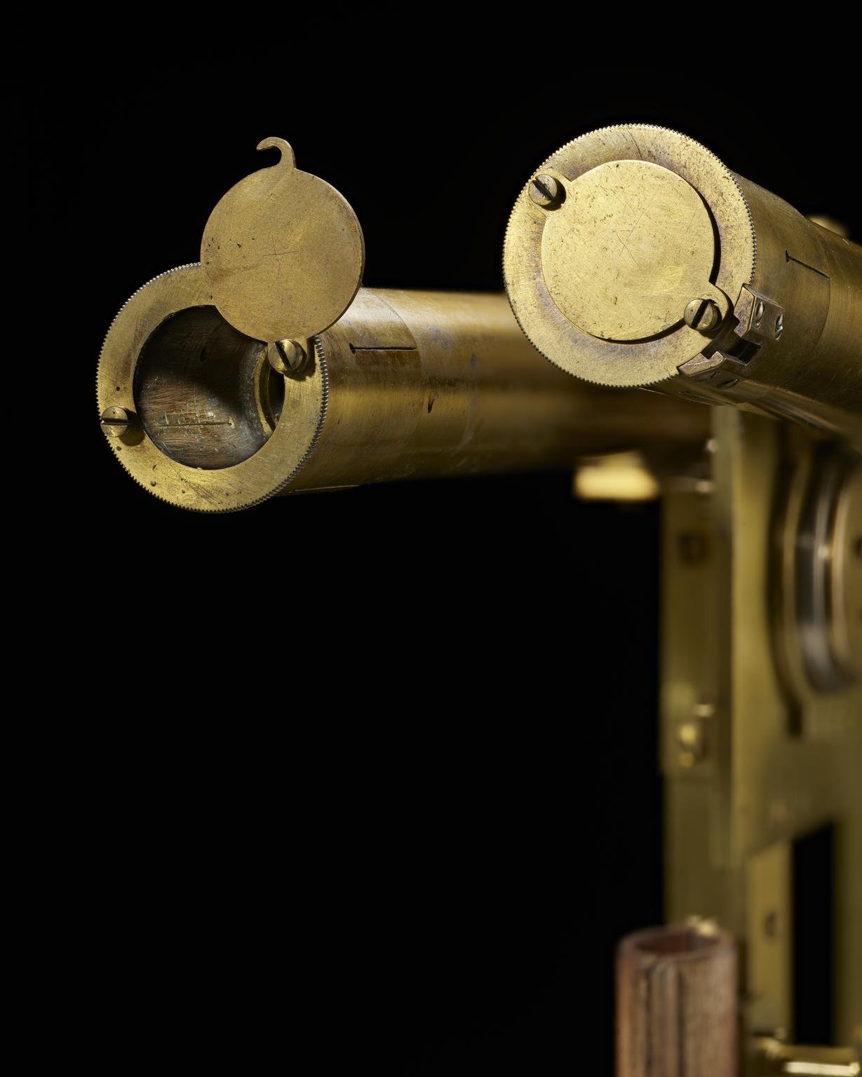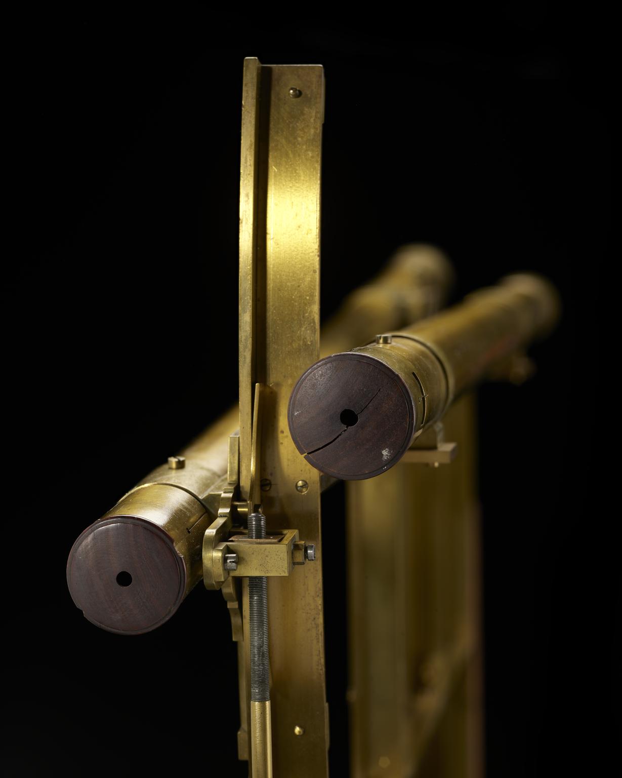 Brass quadrant with 0-90° scale of 18-inch radius with second scale of 0- 96° divisions with stand, two optical sights and wooden case, by John Bird, London, dated 1771 and signed, 'W.L.'. Originally the property of the reverend William Ludlam, mathematican and fellow of St. Johns College, Cambridge.