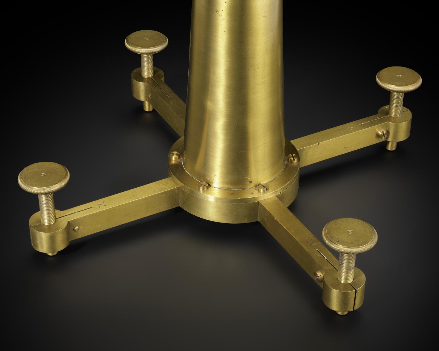 Brass quadrant with 0-90° scale of 18-inch radius with second scale of 0- 96° divisions with stand and two optical sights by John Bird, London, 1771.