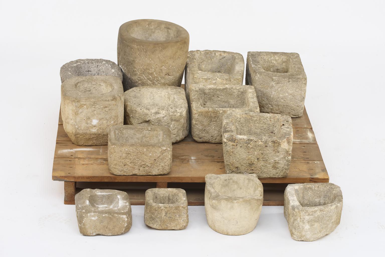 Two replicas of Hebrew Liquid and Seed measures from a set of 21, made in limestone as originals, of 1st century A.D.
