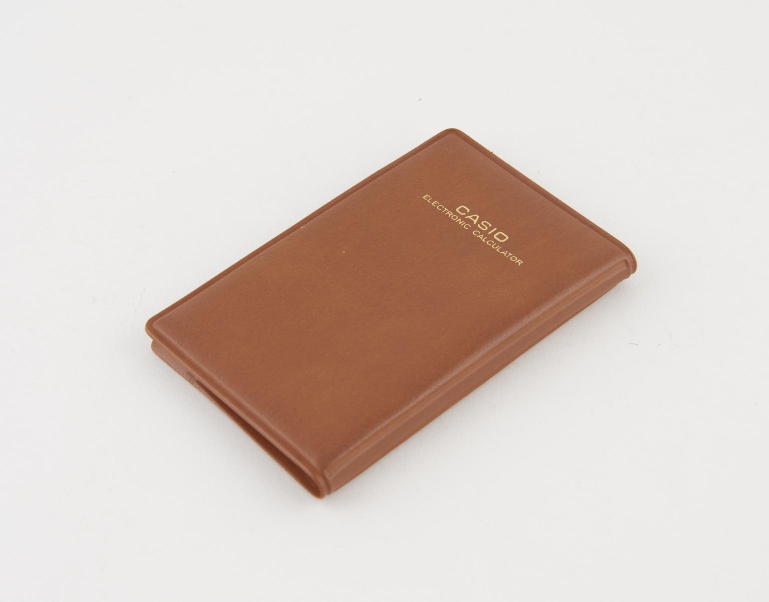 Brown plastic wallet, for Casio LC-841, LCD pocket electronic calculator