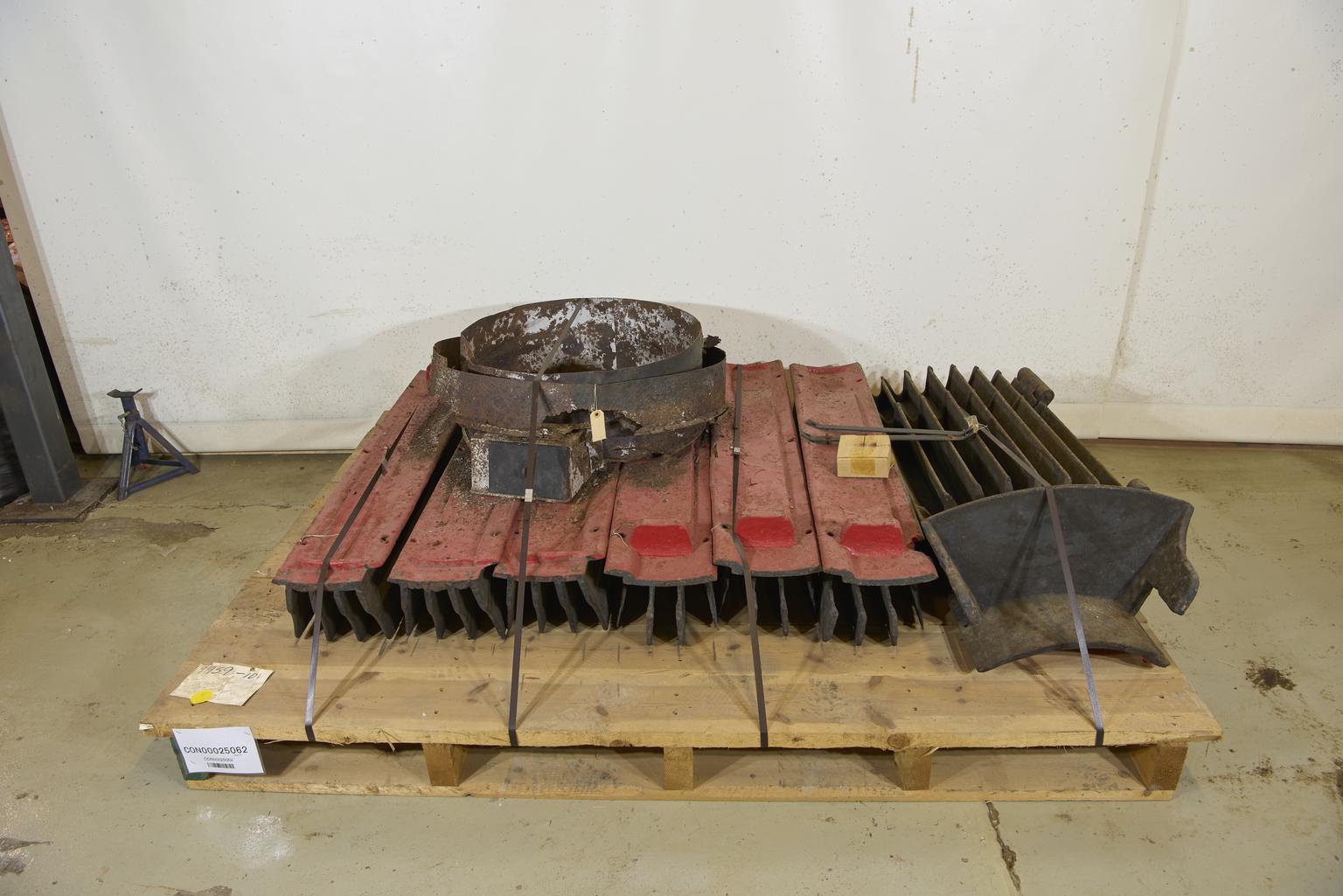 Parts from Gurney stove, installed in Gloucester Cathedral in 1865 and removed in 1958. Comprising of six side panels, the door, two brackets, assorted nuts and bolts and the ash tray.