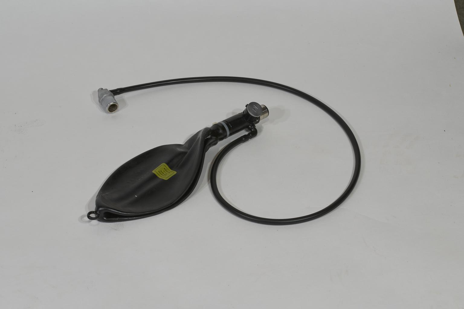 Roche anaesthetic trolley with a hose support arm on a rail mounting clamp, by Kontron, 1979