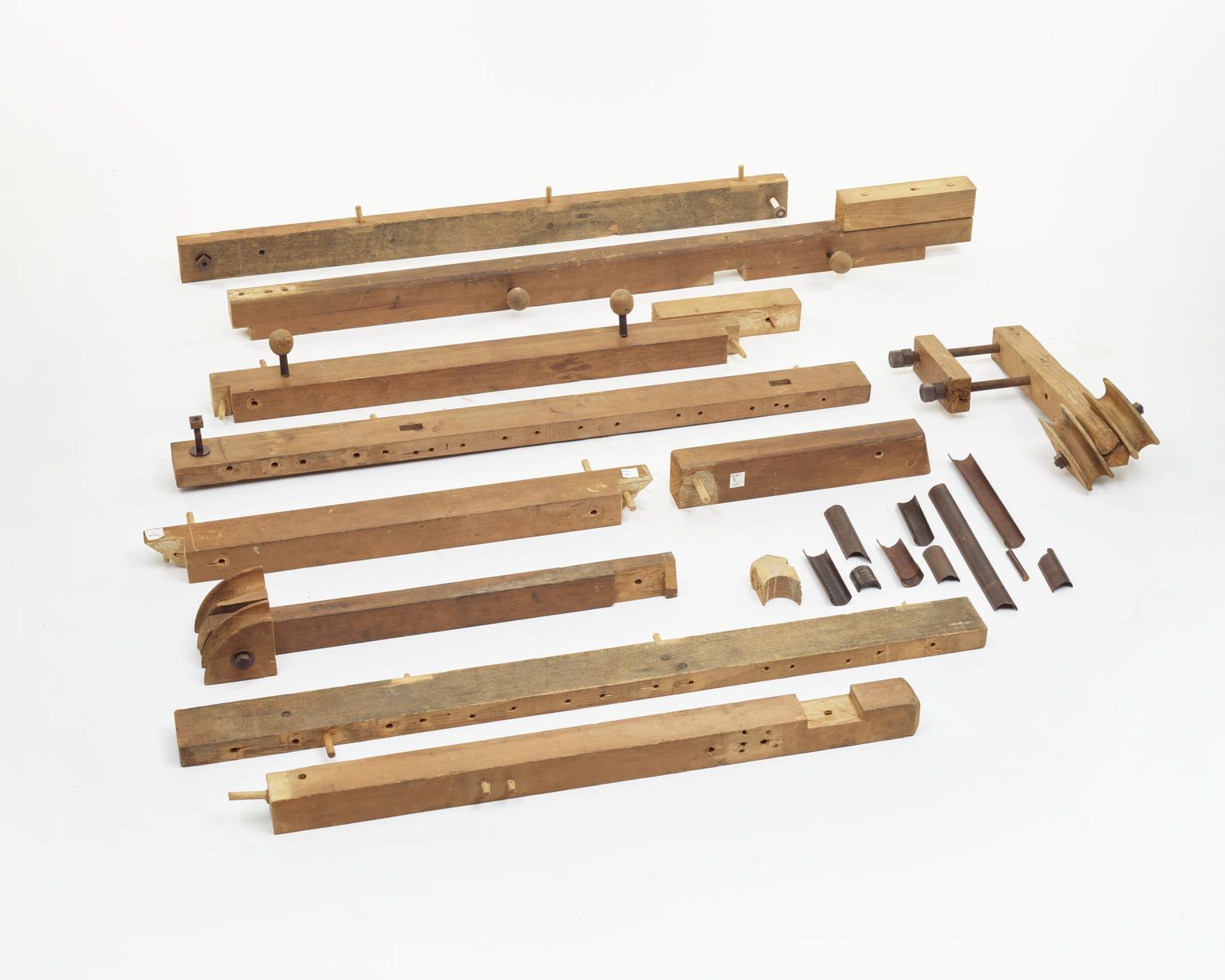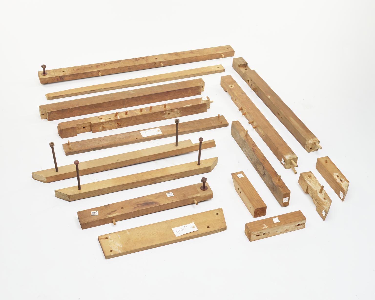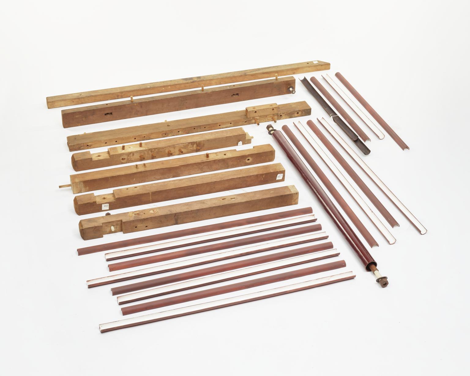 - metal (unknown) , synthetic-resin-bonded-paper , copper (metal) , Sitka spruce (wood) , nylon and wood (unidentified)