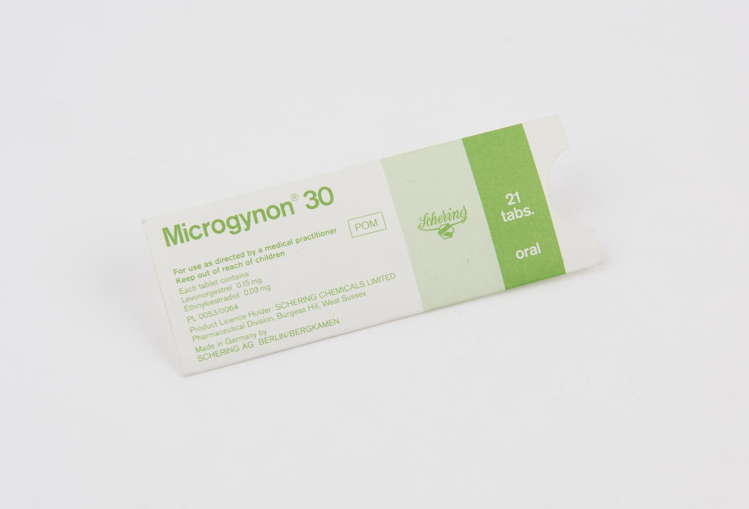 Box for Microgynon 30 oral contraceptive pills containing levonorgestrel and ethinyloestradiol, Schering AG Berlin/Bergkamen.