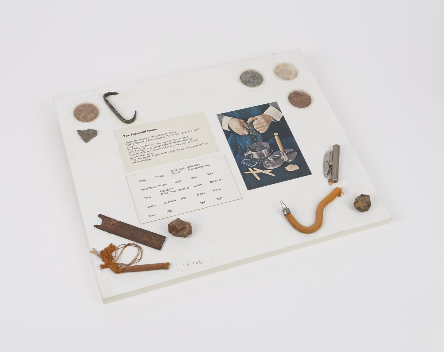 Flint, steel, and tinder from axis of leaves of Dwarf palm, Indian