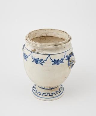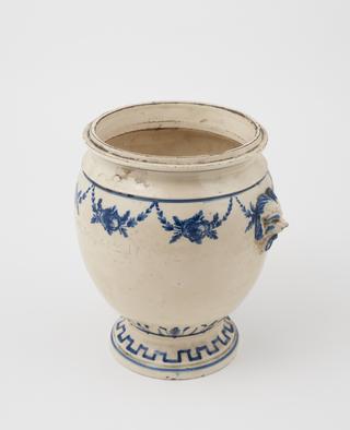 Italian syrup jar, early C18 blue and white probably from Veneto, used for oil of puppydogs