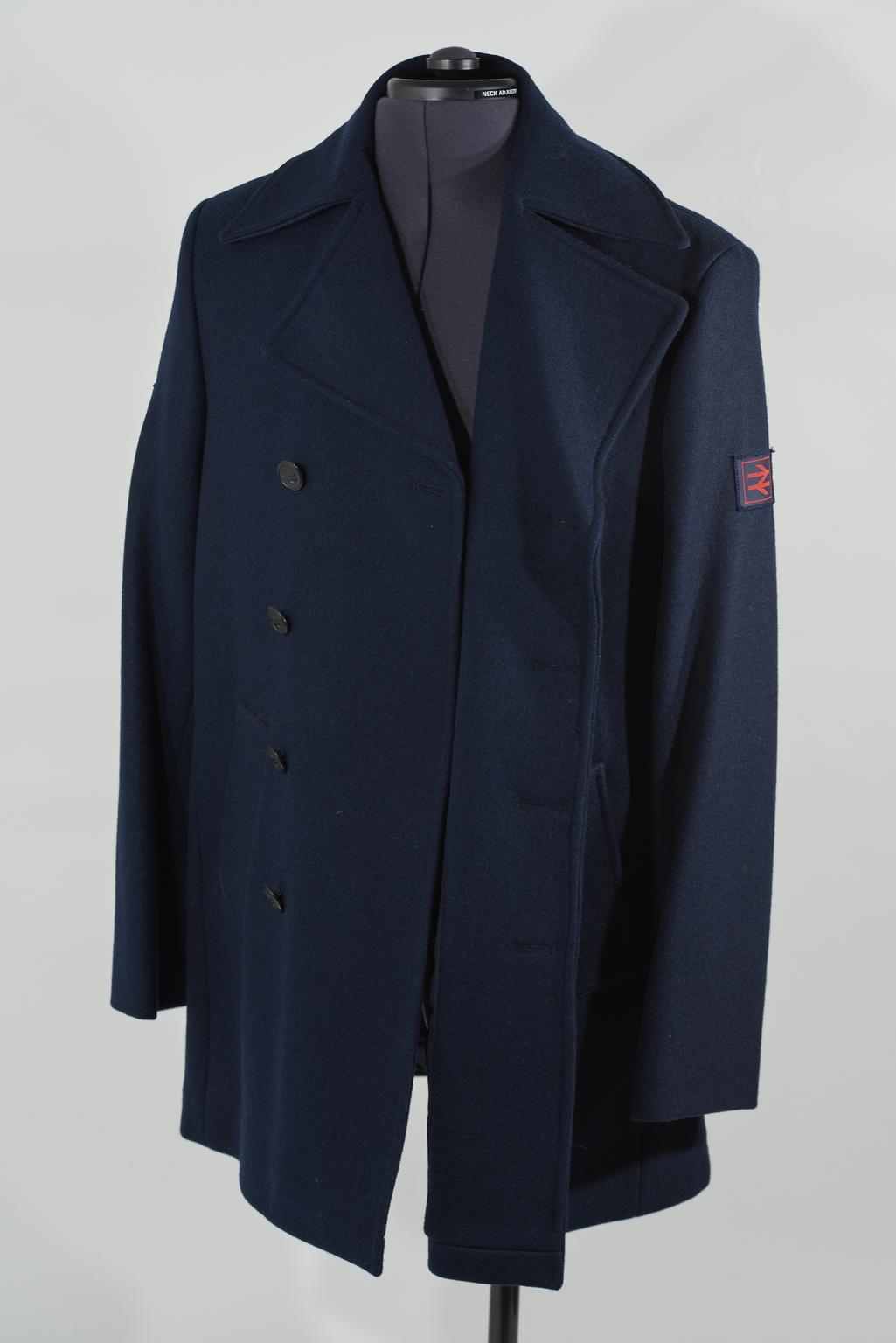 Double-breasted overcoat from Goods Manager uniform, British Railways, pre. 1967 style, midnight blue. Issued to Albert Edward Marriott, Goods Manager, Euston station.