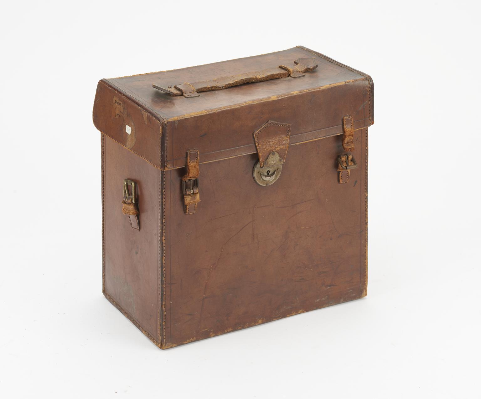 Triple victo stand camera case, of leather. Houghtons Limited.