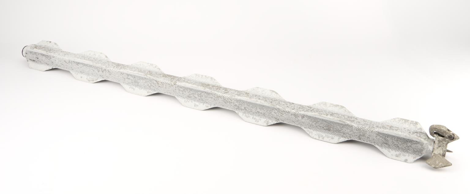 one of two magnox uranium fuel rod cans with a helically finned surface, used in Reactor 1, at Sizewell-A Nuclear Power Station. Polyzonal design formed by extruding and twisting.