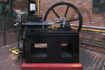 From the 1920s, mill owners began to convert from steam power to electric power, with each machine in the mill having its own electric motor. This meant that large steam engines like this were no longer needed for driving machines. Built in 1926, this was the last new reciprocating steam engine to be supplied to a cotton mill and represents the peak of mill engine technology.