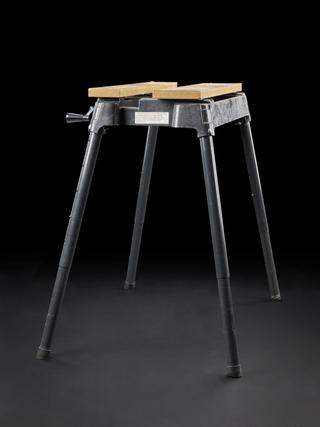Small pillar drill. Handle on the top and another small lever underneath for adjusting the drill table. Manufacturer unknown.