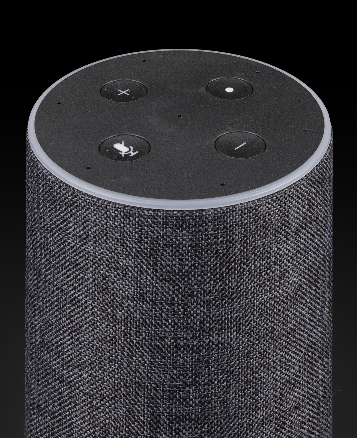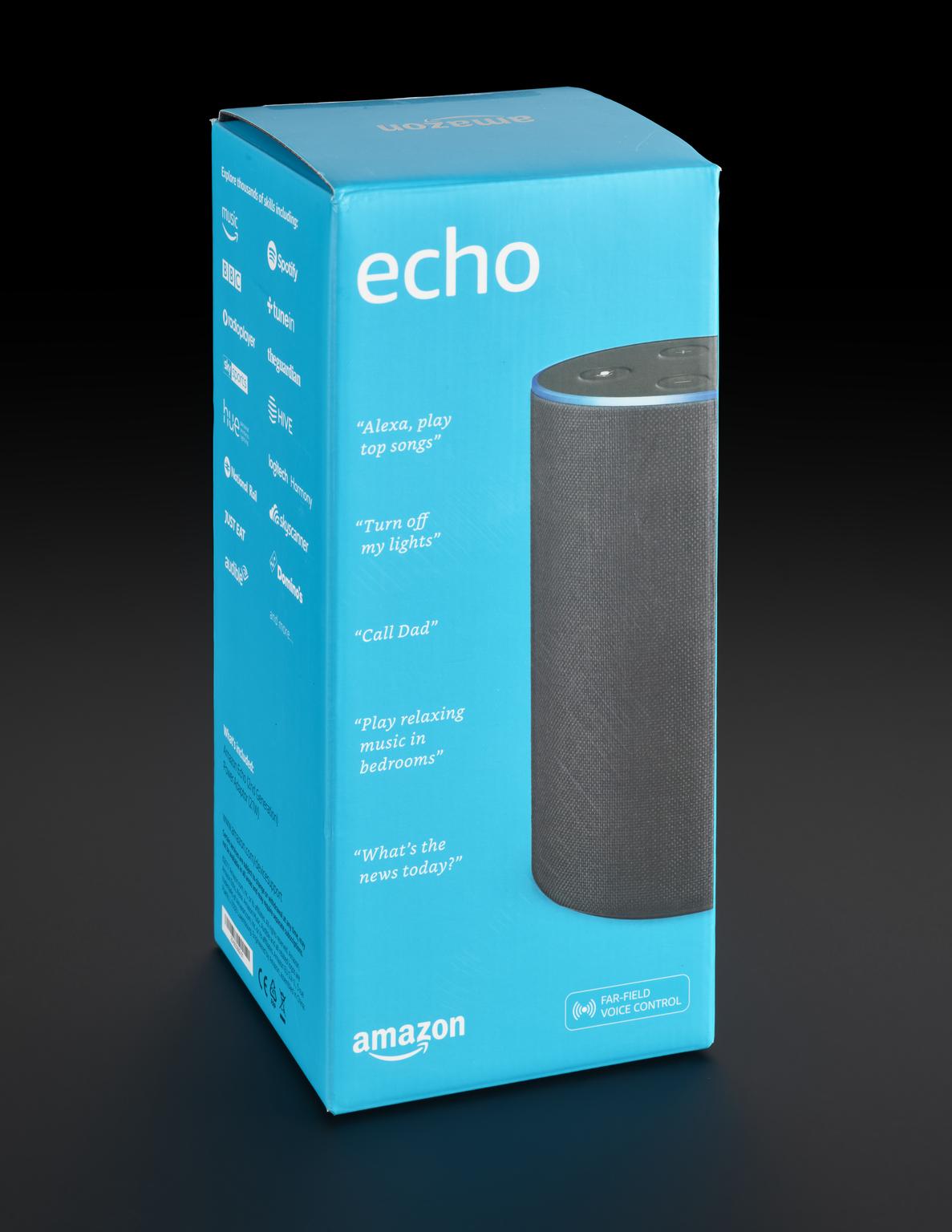 Amazon Echo Second Generation bluetooth smart speaker with cloud-based virtual assistant 'Alexa', made by Amazon, manufactured in China, c. 2016-2019.