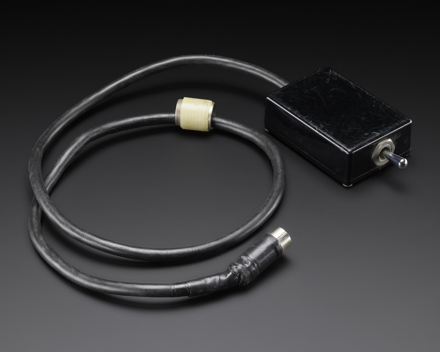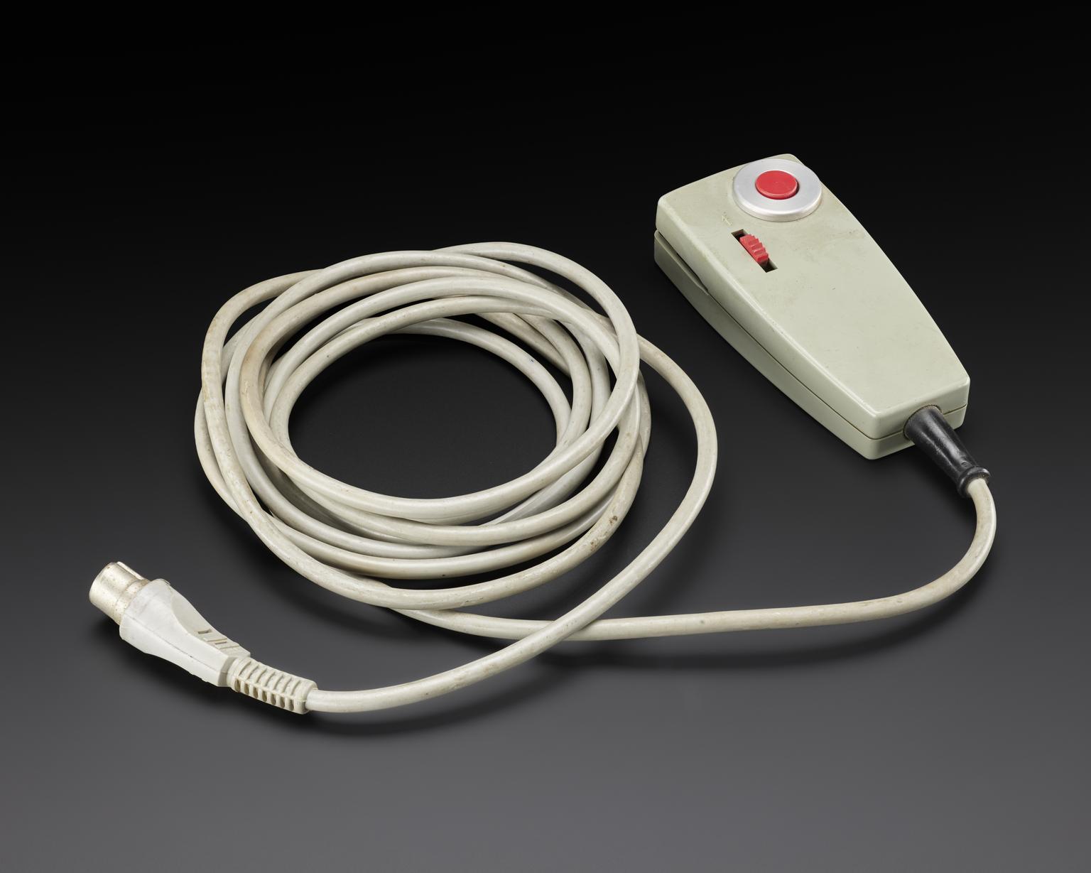 Switch attached to black box and cable, for mechanical real-time scanner ‘Vidoson 635’, Siemens, Germany 1965.