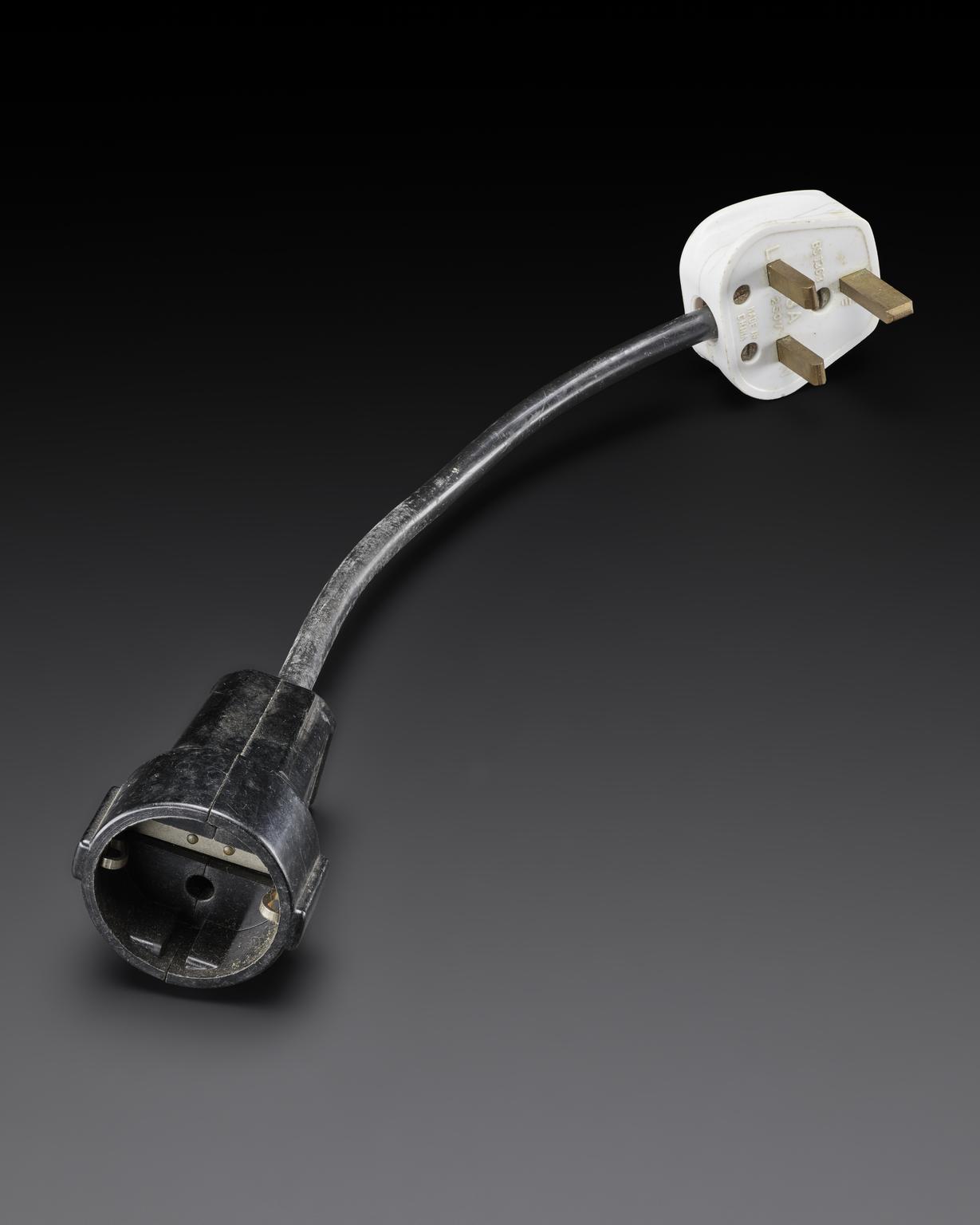 Black cable with black socket and white plug for mechanical real-time scanner ‘Vidoson 635’, Siemens, Germany 1965.