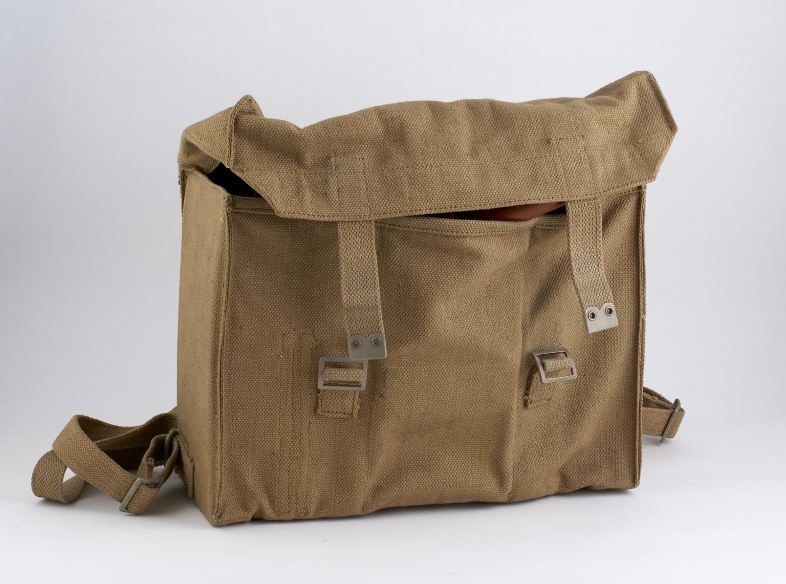 Metal canister containing rubber breathing bag, part of I.M.P. apparatus, 1951-1965