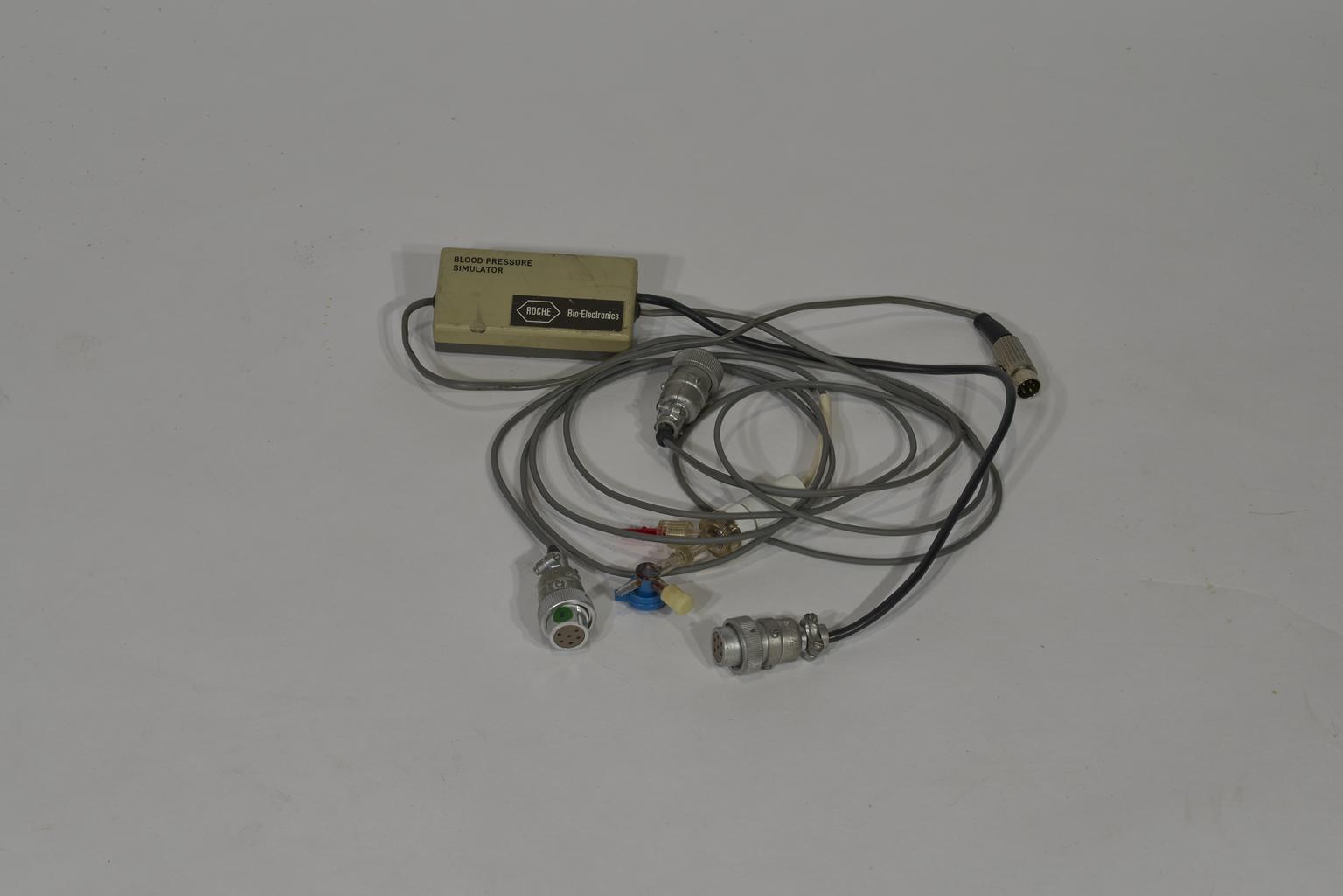 Blood pressure simulator from module containing one ECG module and three blood pressure modules, for use in operating theatre with other Roche modules, made by Roche Ltd and supplied by Kontron Instruments Ltd., 1979
