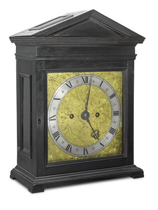 Table clock in ebony case by Samuel Knibb
