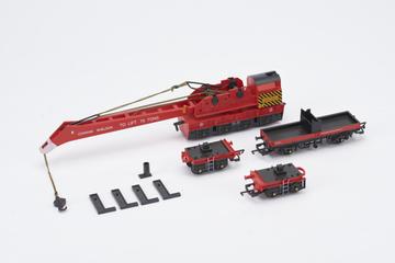 Model rail crane and two wagons, c 1995.