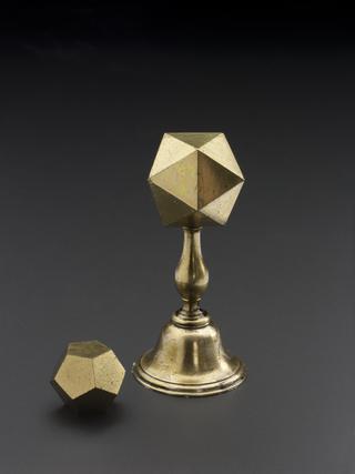 Icosohedron on pedestal and dodecahedron