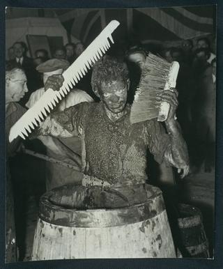 Daily Herald Photograph: Cooper initiated in soot, ash, water and a barrel